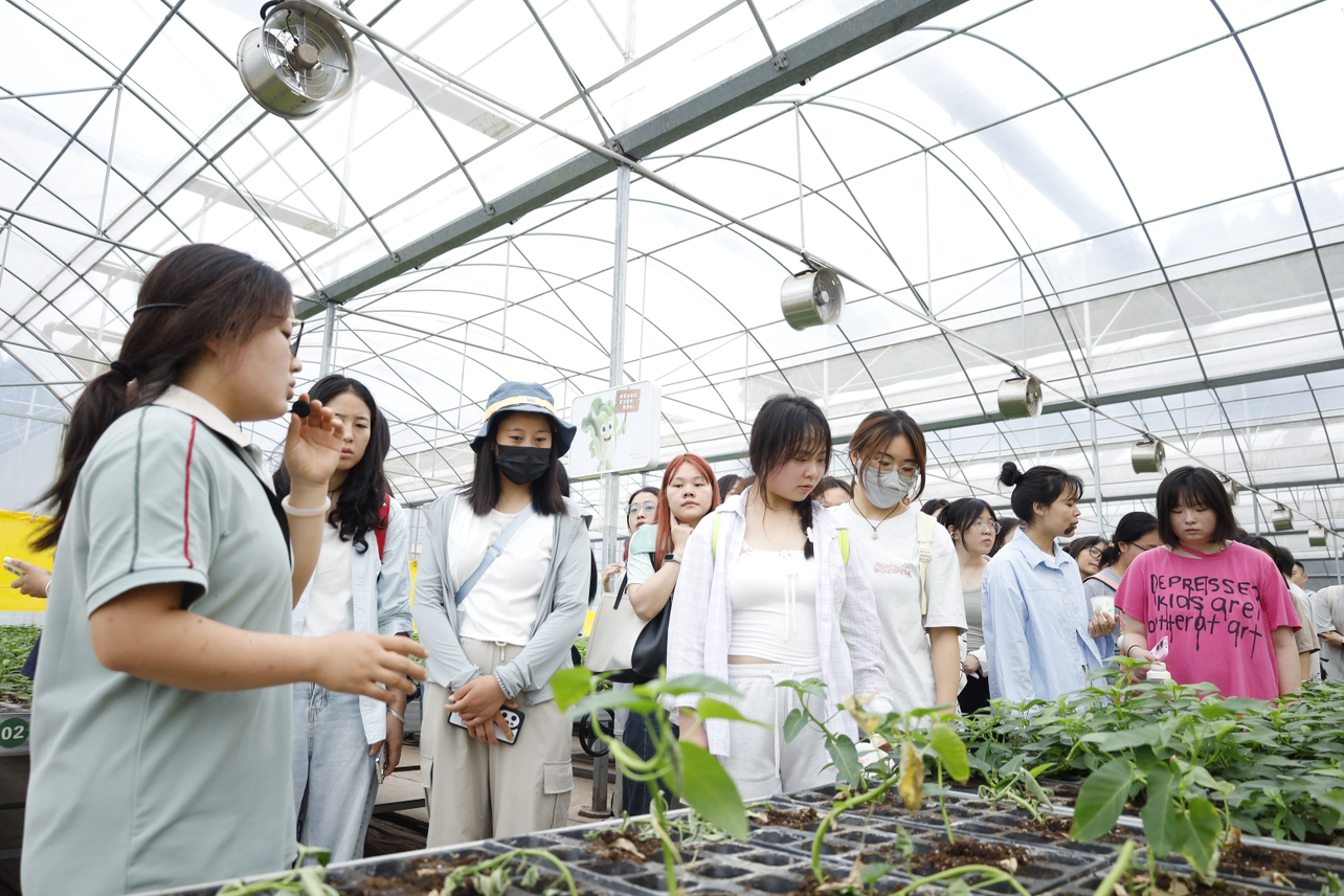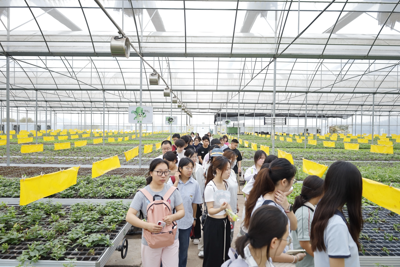 来自四川师范大学遂宁校区的120余名园艺专业学生,在基地技术人员的讲解下,参观了基地智能温室、水肥一体化系统、物联网监测平台等现代化设施,见证现代科技赋能农业的无限可能。
