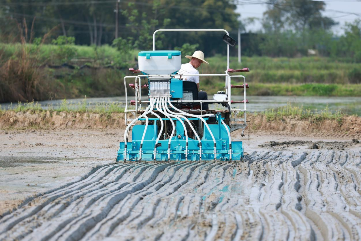 眼下正值春耕生产关键时节,在三家镇芦城村的广袤田野上,一派繁忙景象。当地种粮大户抢抓农时,首次大规模推广水稻直播技术,通过机械化作业直接将稻种播撒入田,为粮食稳产增效按下“加速键”。