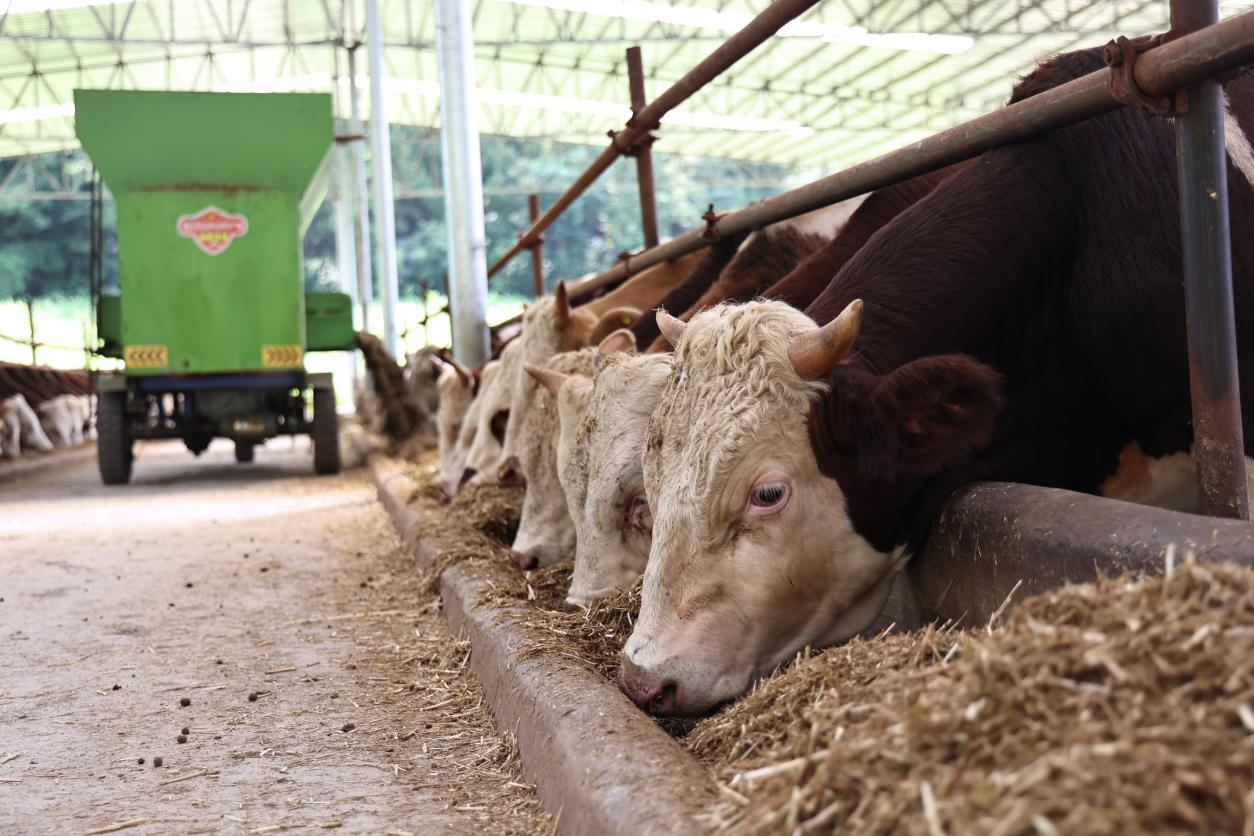 盛夏时节,走进常理镇常乐村肉牛养殖基地,只见一头头毛发光亮、膘肥体壮的肉牛在宽敞的栏舍里享受着自己的午餐。