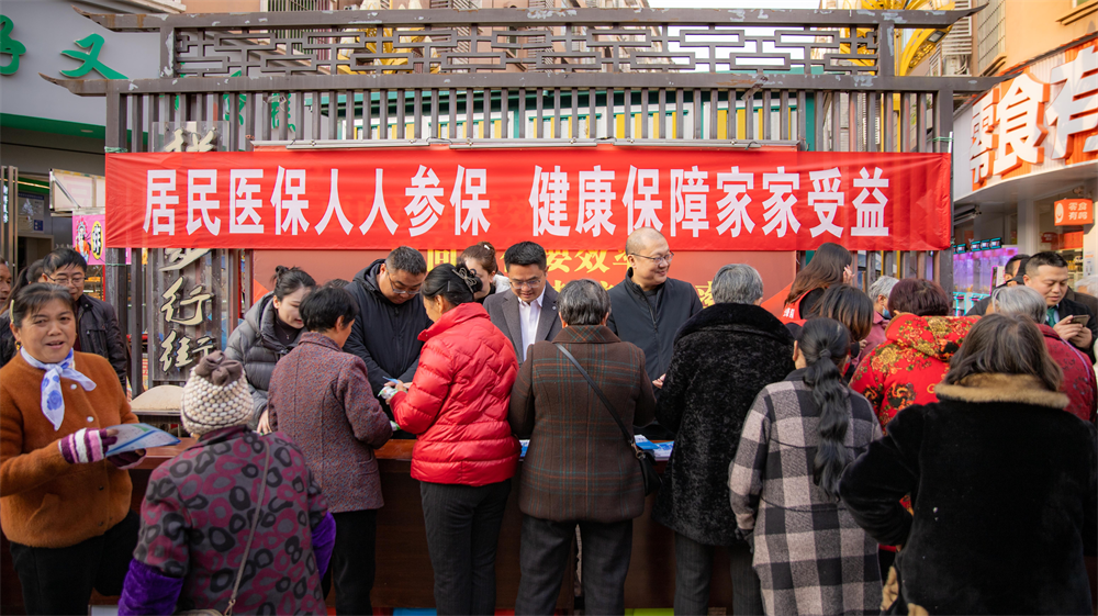 “叔叔阿姨,参加医保就是给健康买份保障,现在缴费方便,报销也方便!”11月25日,拦江镇步行街上人头攒动、气氛热烈,一场关乎群众切身利益的居民医保参保宣传活动在此举行。