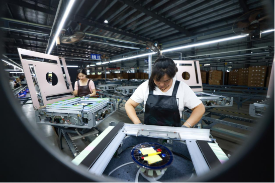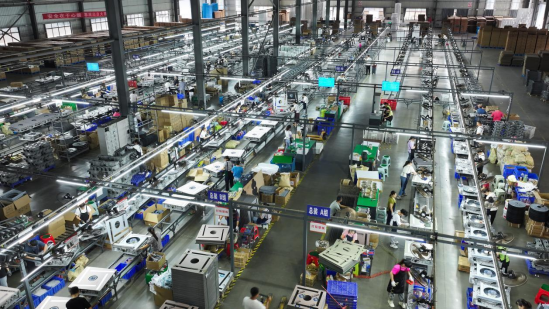 连日来,在安居经开区的四川宣和机电有限公司,工人们正在各自岗位上紧张有序地作业,全力冲刺二季度生产目标任务。经过组装、检验、打包等流程,一台台麻将机顺利下线,即将发往全国各地。该企业日均产量达400余台。