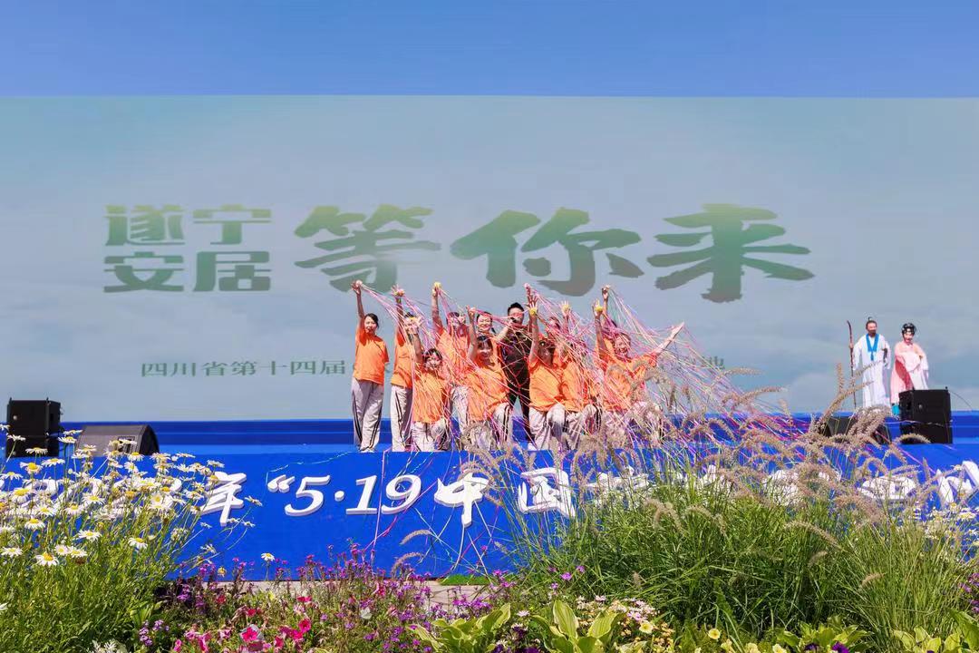 会旗交接仪式后进入“安居时间”,以“养心遂宁 安逸安居”为主题的沉浸式文化旅游演出震撼亮相。