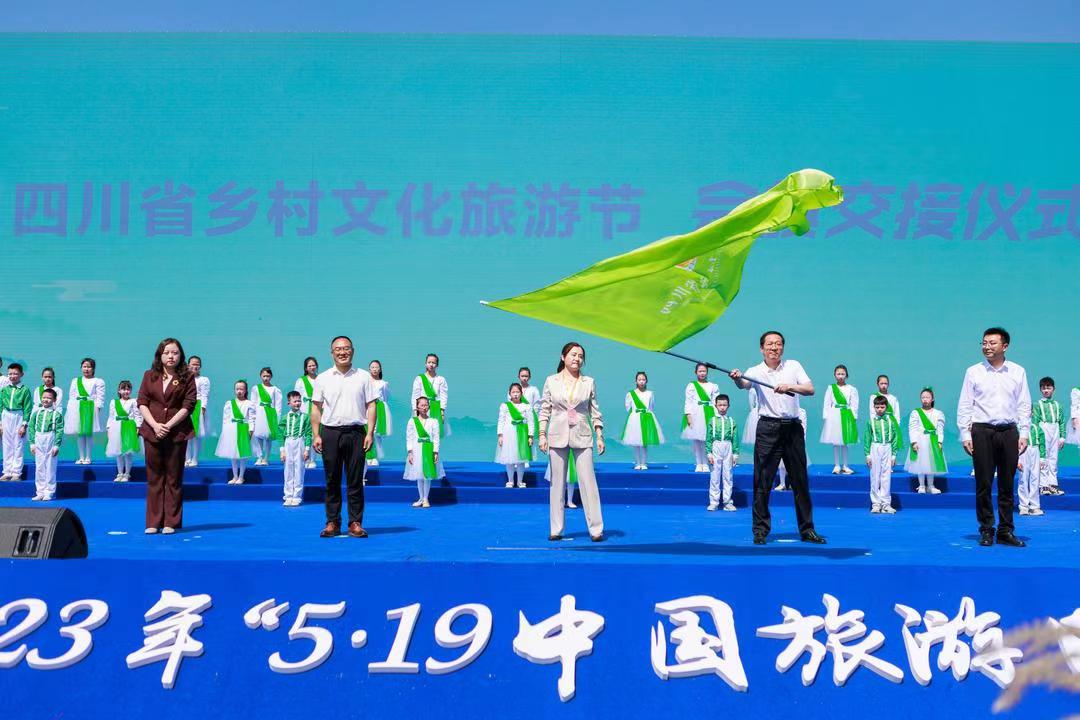 5月19日,在雅安市荥经县四川省第十四届(夏季)乡村文化旅游节活动现场,举行了“四川省乡村文化旅游节”会旗交接仪式,市委常委、副市长、市直机关工委书记岳建光,安居区委常委李奇凌出席并接旗,四川省第十四届(秋季)乡村文化旅游节将于9月在安居区举办。