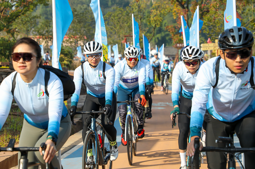 11月19日,2023年四川省“百城千乡万村•社区”系列赛事活动安居区环“海龙凯歌”自行车骑游邀请赛正式开赛,来自遂宁周边的200余名骑行爱好者相汇安逸安居,相聚海龙凯歌,穿越绿水青山,用激情与速度展示骑行风采。