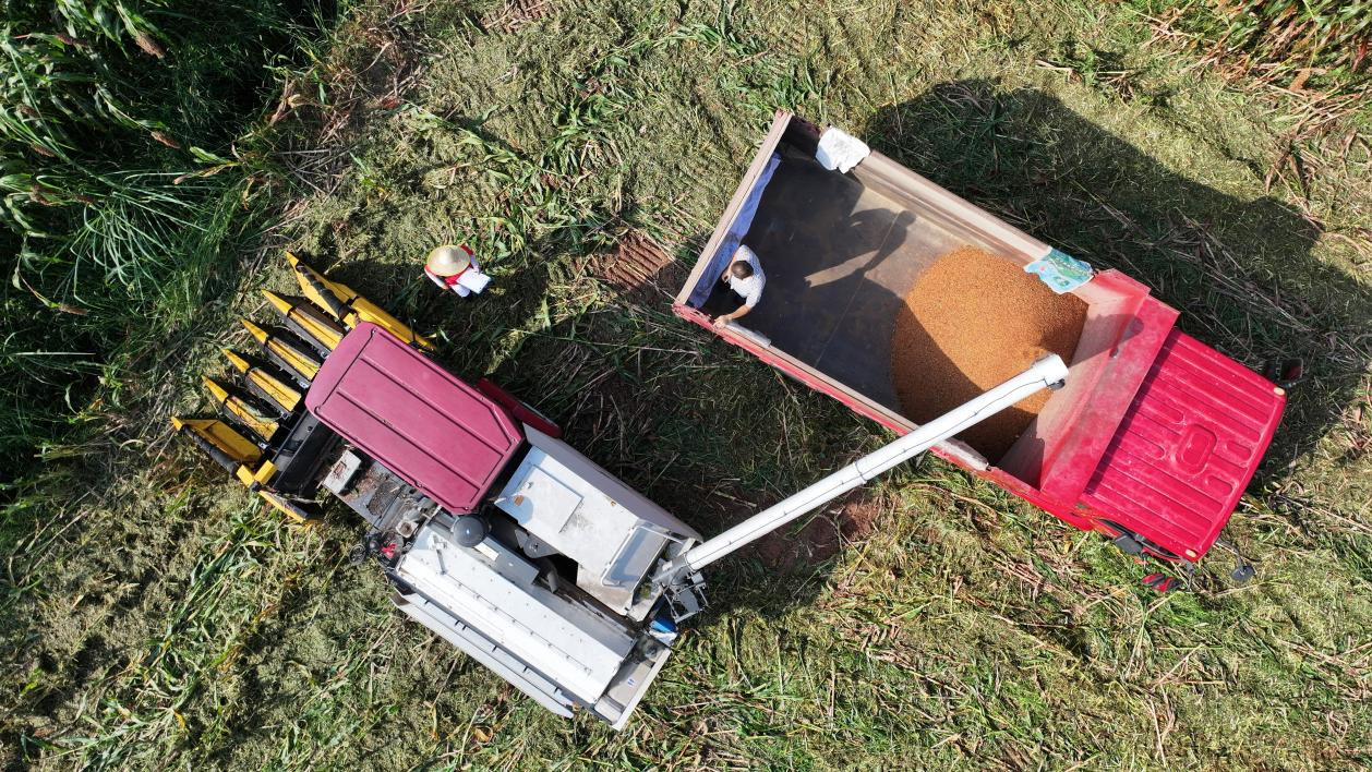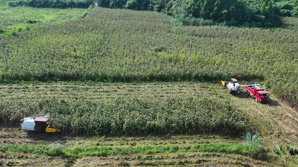 在横山镇石山村,成片的高粱已经火红成熟,当地抢抓晴好天气组织收割、烘干,确保颗粒归仓。
