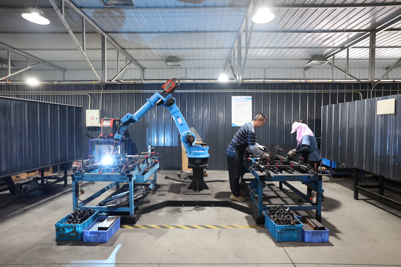 工人正在钢筋生产、桥梁装配、打磨、起运等各岗位上忙碌着