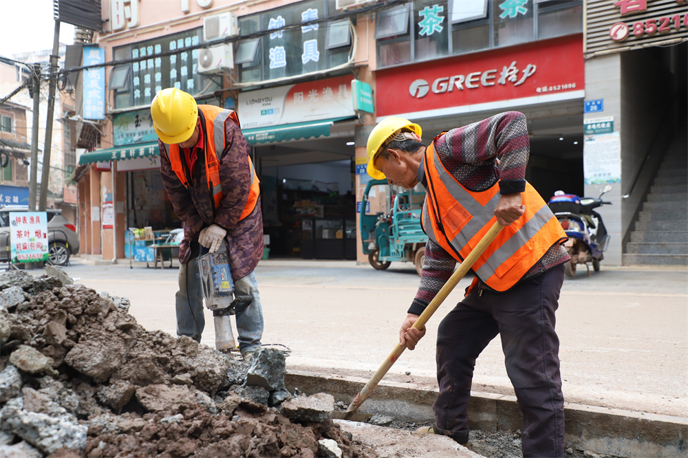 目前,施工重点已由去年的主街改造逐步延伸至巷道及配套设施提升,主要建设内容包括雨污分流管网改造和人行道附属工程。项目现场负责人熊华林介绍,“目前,我们每天投入约30名施工人员和5台挖掘机,对剩余工程量进行最后冲刺。为确保项目按时保质完成,后续将进一步增加人员与机械投入,全力推进工程建设。”