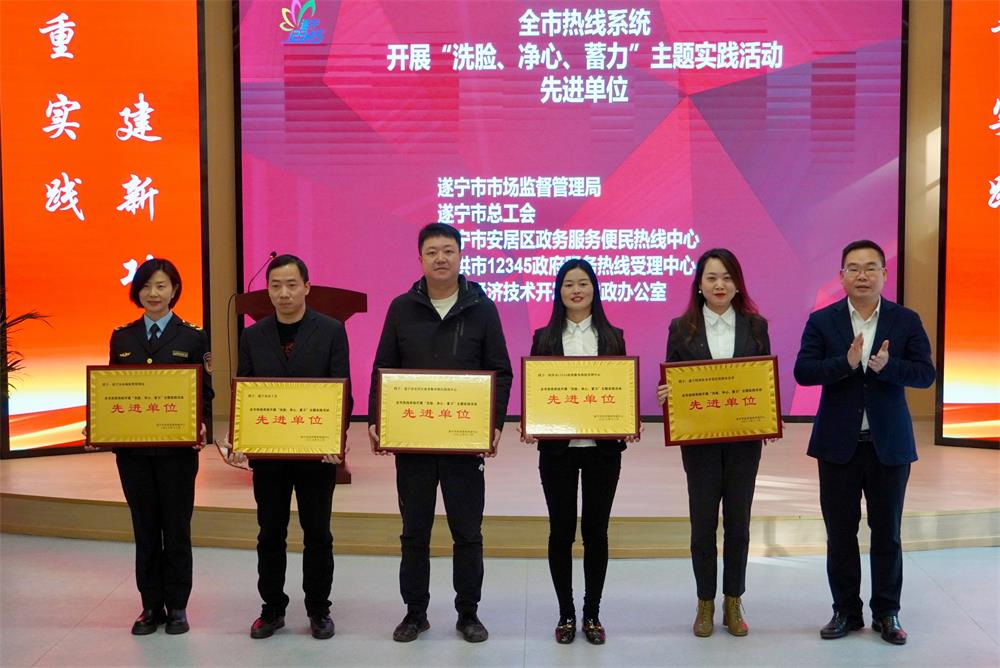 近日,全市热线系统“洗脸、净心、蓄力”主题实践活动总结会召开。会上,对2023年全市热线系统积极开展“洗脸、净心、蓄力”主题实践活动先进单位进行了表扬,其中遂宁市安居区政务服务便民热线中心榜上有名。
