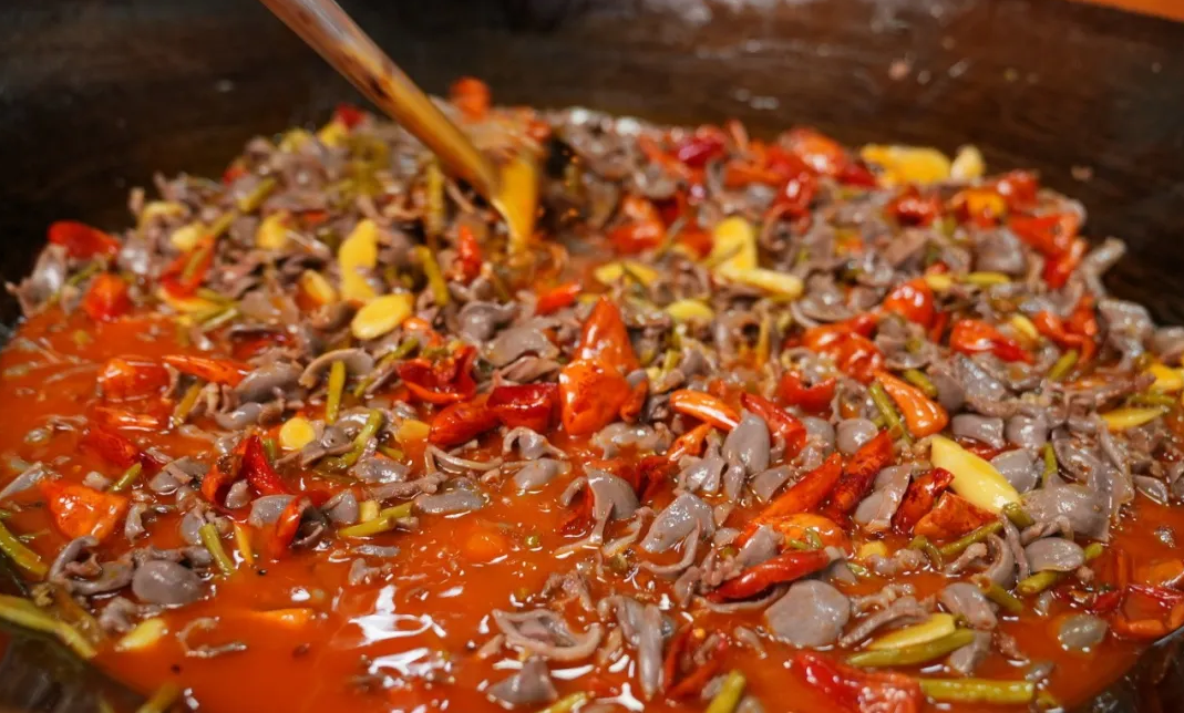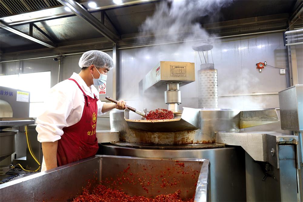 近日,记者走进四川川味里食品有限公司生产车间,扑鼻而来的就是一阵麻辣与牛油的醇厚鲜香,自动化炒料机器运转不停,香料、辣椒在油锅里不断翻转,数名工人正在操作台前忙碌,现场一派繁忙景象。