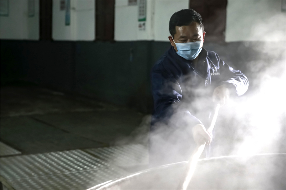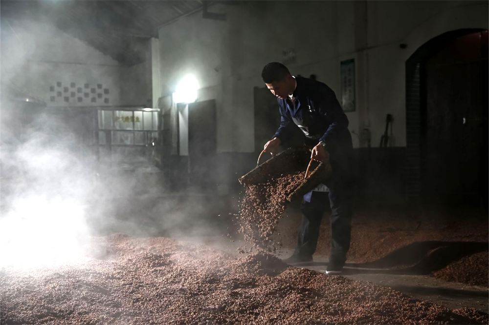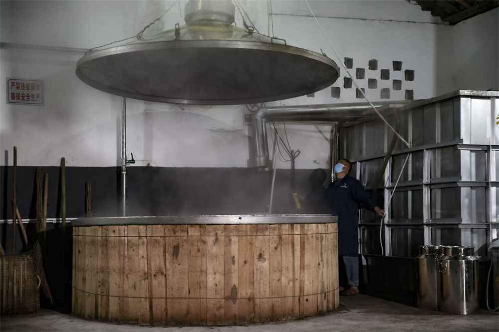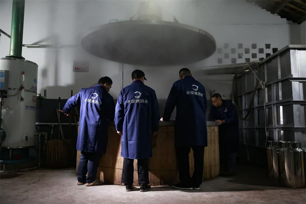 白马镇老龙塘酒厂内呈现出一派繁忙的生产景象