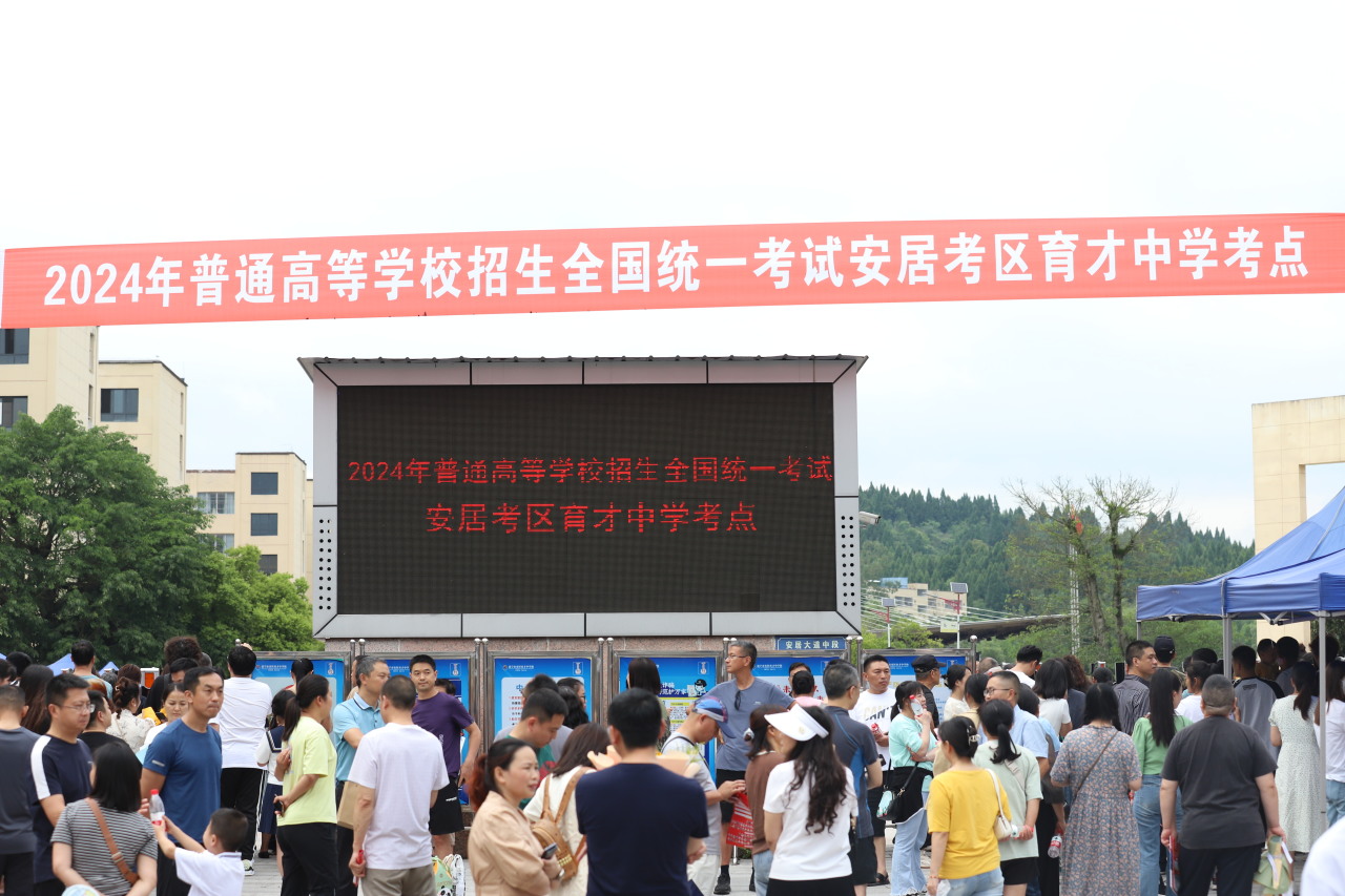 据悉,今年安居区共3331名考生参加高考,全区共设安居育才中学1个高考考点,112个标准化考场。高考期间,在社会各界及相关部门共同努力下,安居区高考考点内外秩序井然,考试总体平稳、顺利。