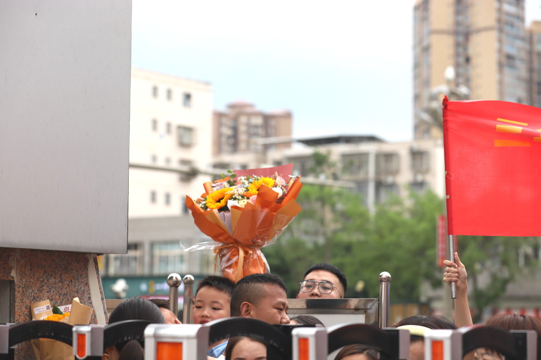 家长们迫不及待地上前送上提前准备好的鲜花和礼物,一时间,考点外家长的掌声和考生纵情释放的呼喊声响成一片,为一年一度的高考打上一个特别的句点。