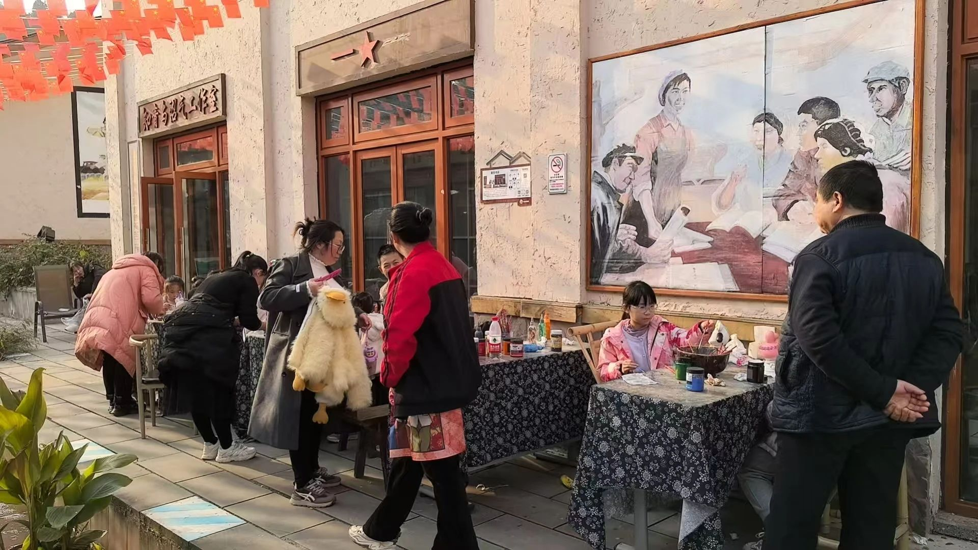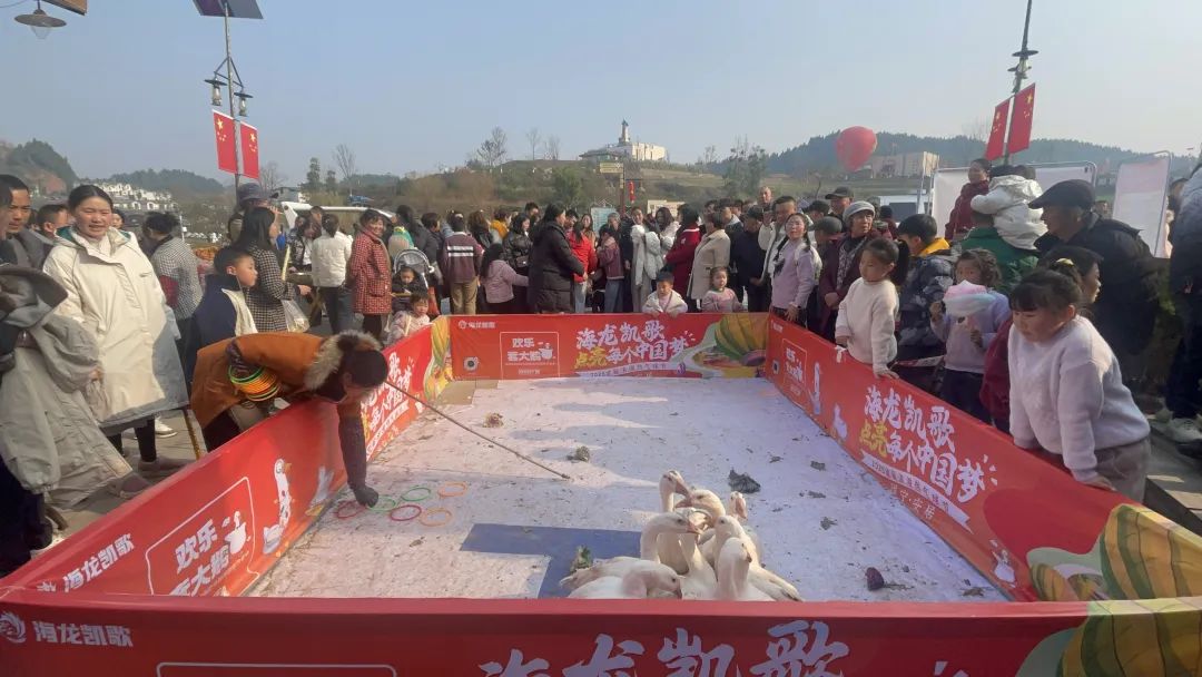 1月1日这天,热情的游客们怀揣着对天空的好奇与向往,排着长队等待坐上热气球;抓猪、抓鸡、套鹅大舞台也迎来了欢声笑语,小朋友在场地中与动物们激烈角逐、斗智斗勇;DIY手作区中各位亲子家庭执笔画不停,展现出天马行空的想象力。