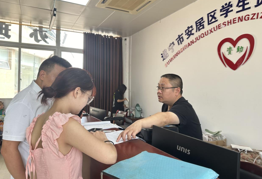 “八月中下旬,集中办理的人员较多,我们资助中心将延长办理时间,保证学生及家长不管什么时候来,我们都有工作人员接待,直到他们办理结束。”区学生资助管理中心干部龙辉表示。