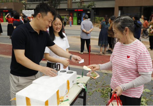 活动以“唤醒传统文化认同,拉近邻里情感距离”为核心,设置六大民俗体验区与文艺演出区,居民可参与包粽子、艾草香囊DIY、欢乐钓粽子、吃粽子游戏等民俗活动,现场还特别设置“祈福签到区”,居民亲手书写绘制祈福签,寄托对家人安康、社区和谐的美好愿景。