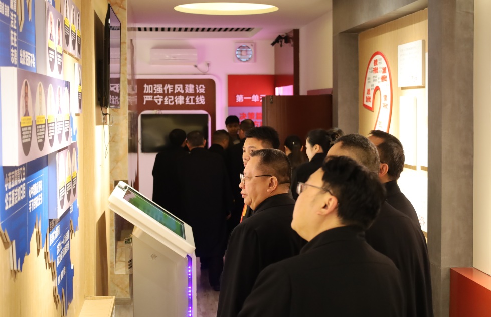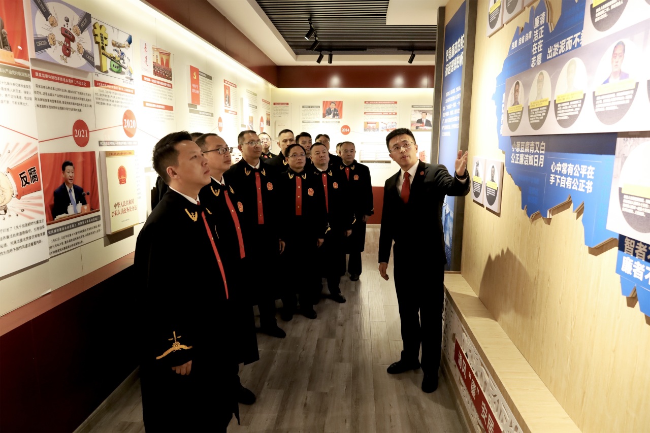 仪式结束后,全体员额法官参观了反腐倡廉警示教育中心,大家在廉政先进事迹展板前驻足瞻仰,在反腐警示案例前对照反思,进一步筑牢拒腐防变的思想防线。