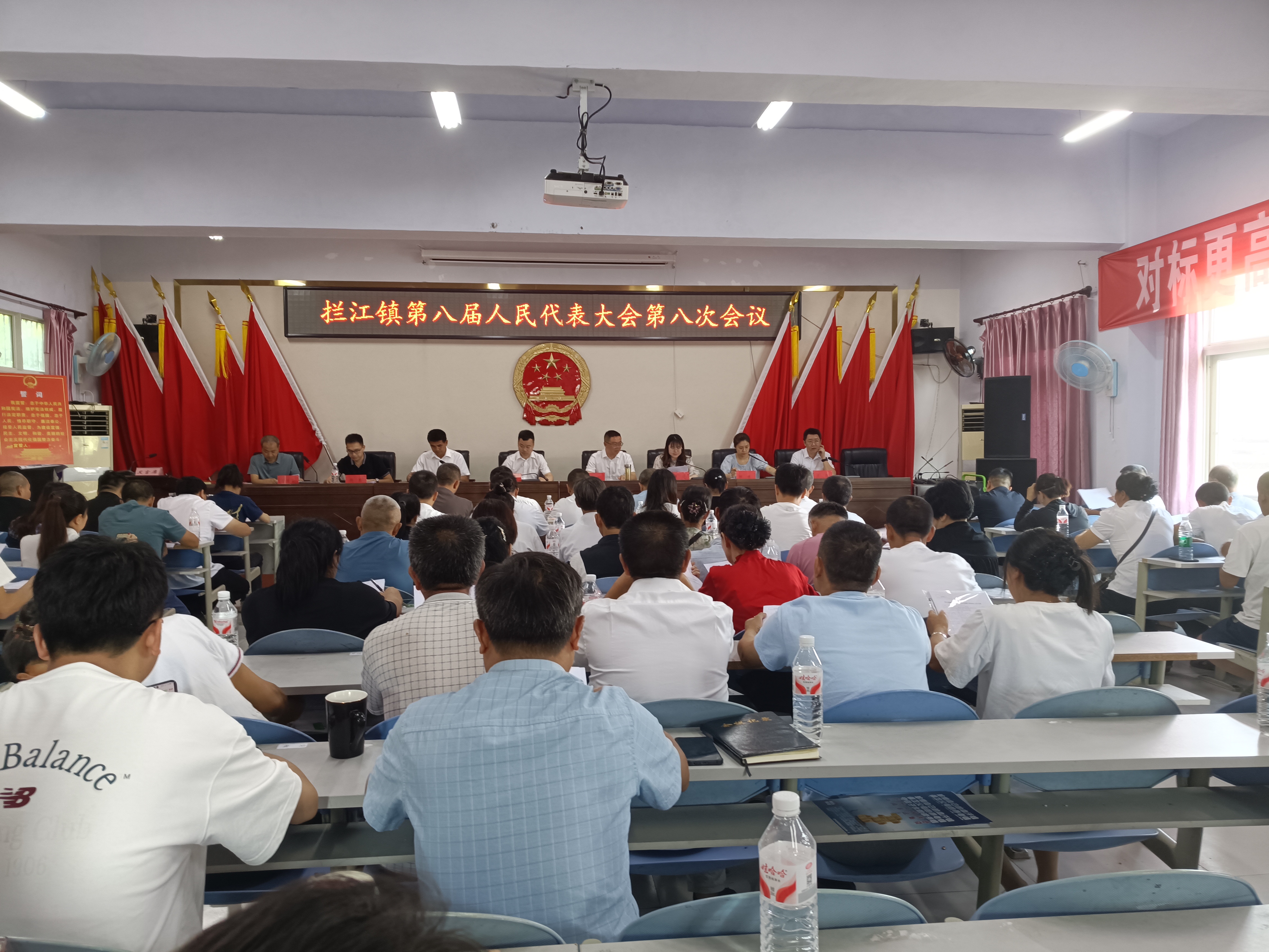 2025年6月17日,经拦江镇人大主席团研究,并报请镇党委同意,召开拦江镇第八届人民代表大会第八次会议。会上,全体代表激情洋溢、精神饱满,听取和审议了《政府工作报告》、《乡村振兴促进工作报告》、《人大主席团工作报告》等报告4个,对2024年民生实事进行满意度测评、对2025年民生实事进行票决,选举伍光勇同志为人大主席,辞去彭商通同志副镇长职务。