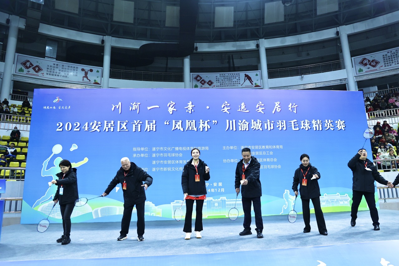 12月7日上午9点20分,川渝一家亲·安逸安居行2024安居区首届“凤凰杯”川渝城市羽毛球精英赛隆重开幕。羽毛球世界冠军付雪受邀亮相安居,交流技巧,加油助威。