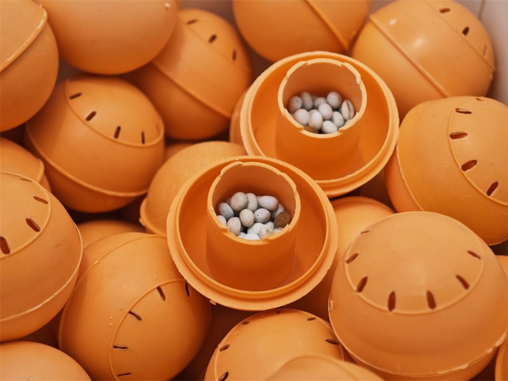 当前,新的生物防治技术正在农业发展中大显身手。近日,三家镇芦城村的百亩生态种植稻田里,被植保无人机投放了许多装着赤眼蜂卵的橙色弹丸。虽然成虫赤眼蜂的身长不足1毫米,但等赤眼蜂孵化后将能有效防治玉米螟、斜纹夜蛾、烟青虫等害虫,是生物防治领域的“尖兵”。
