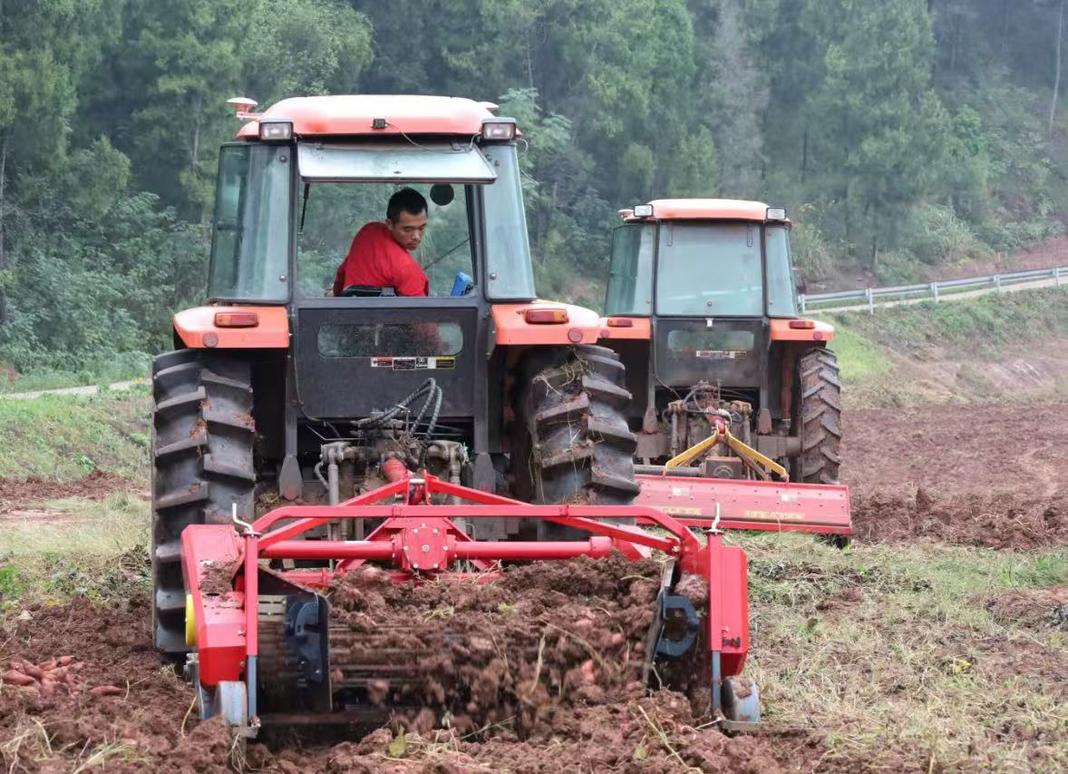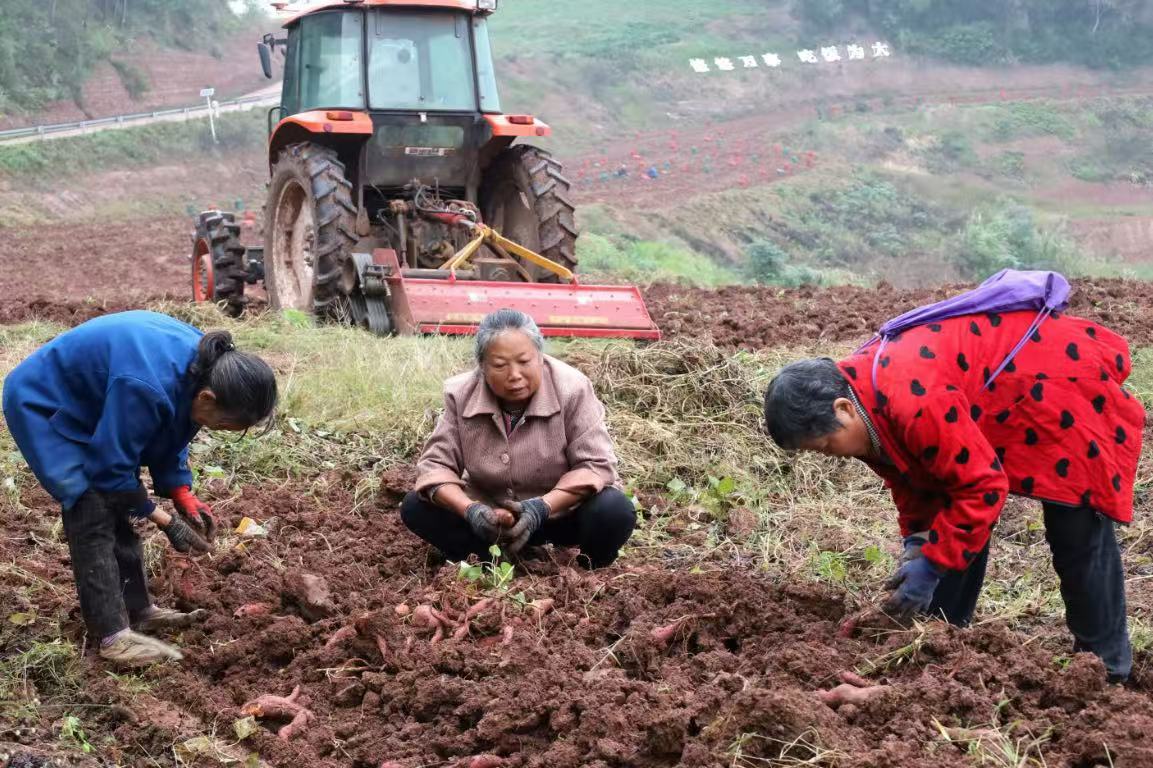 “现在主要收获的品种是‘西瓜红’蜜薯,预计一个星期内收获完成。”安居区巧农农机专业合作社副理事长王芳告诉记者,在收获红薯的同时,合作社还对已收完红薯的空地进行整理,准备开展冬小麦播种工作。