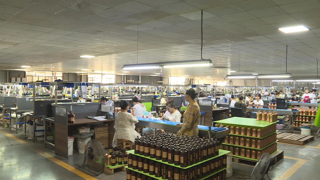 在四川华翔玻陶制品有限公司的生产车间,伴随着机器运转产生的热浪,工人们在半自动化流水线上忙碌不停,生产线两侧的冷风机呼呼作响,一派繁忙的生产景象扑面而来。