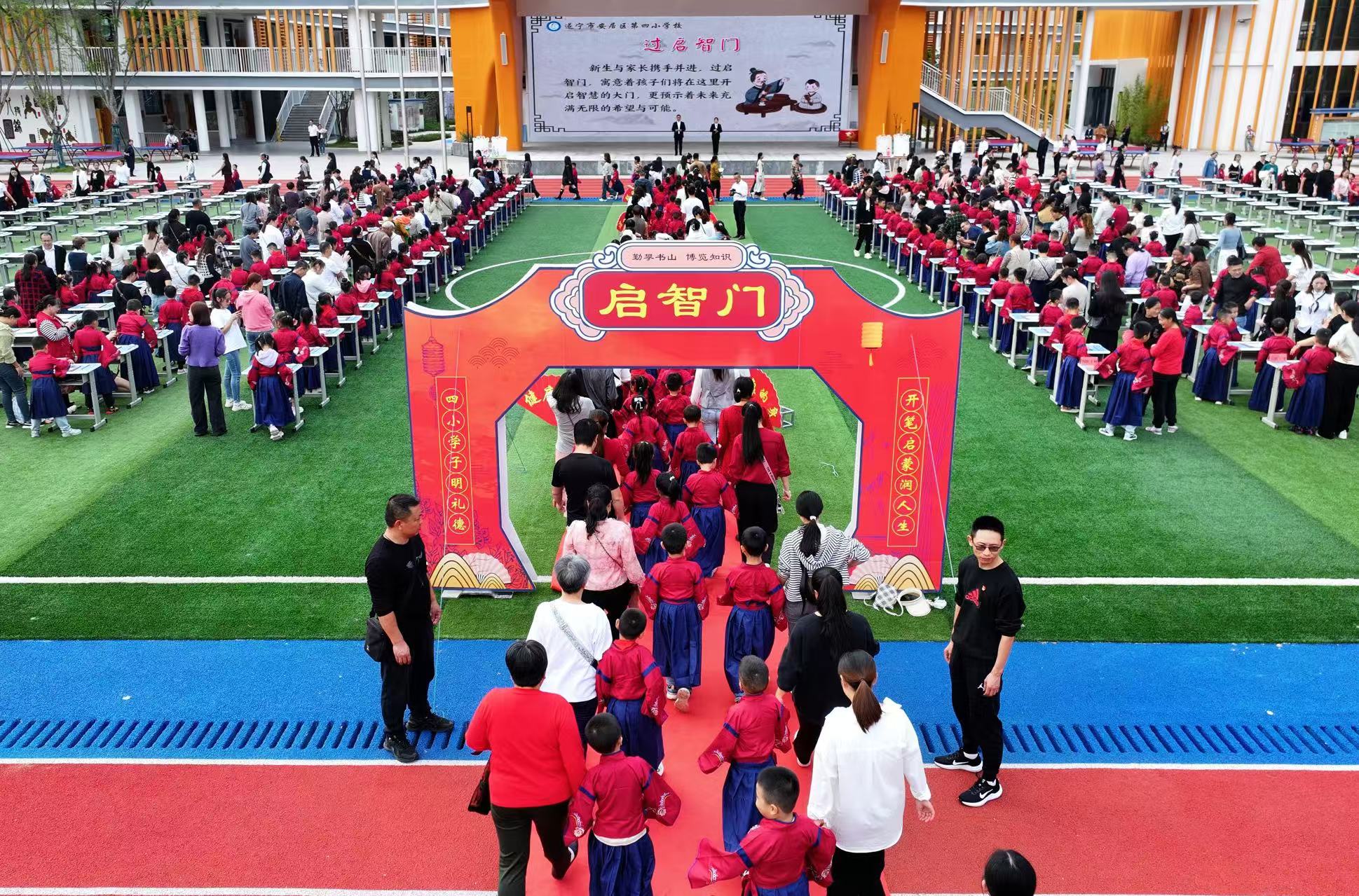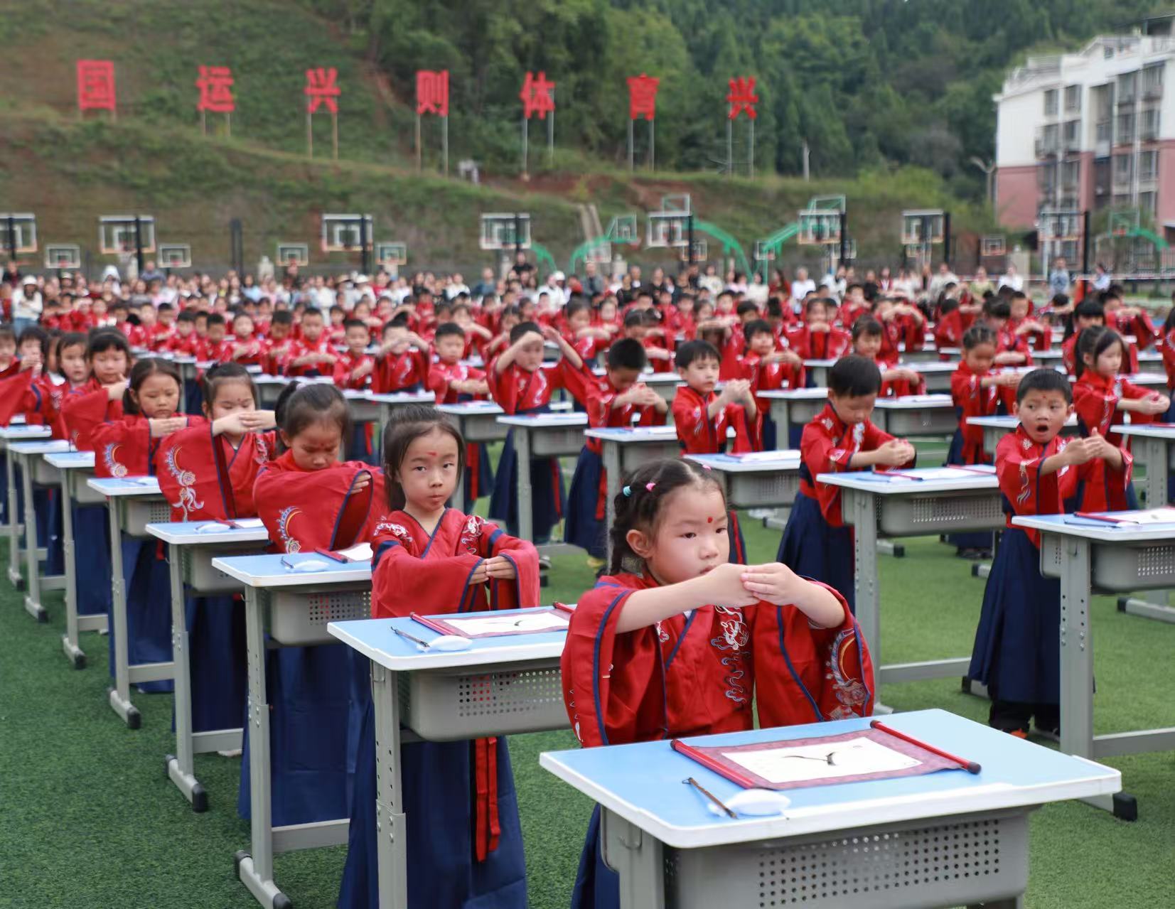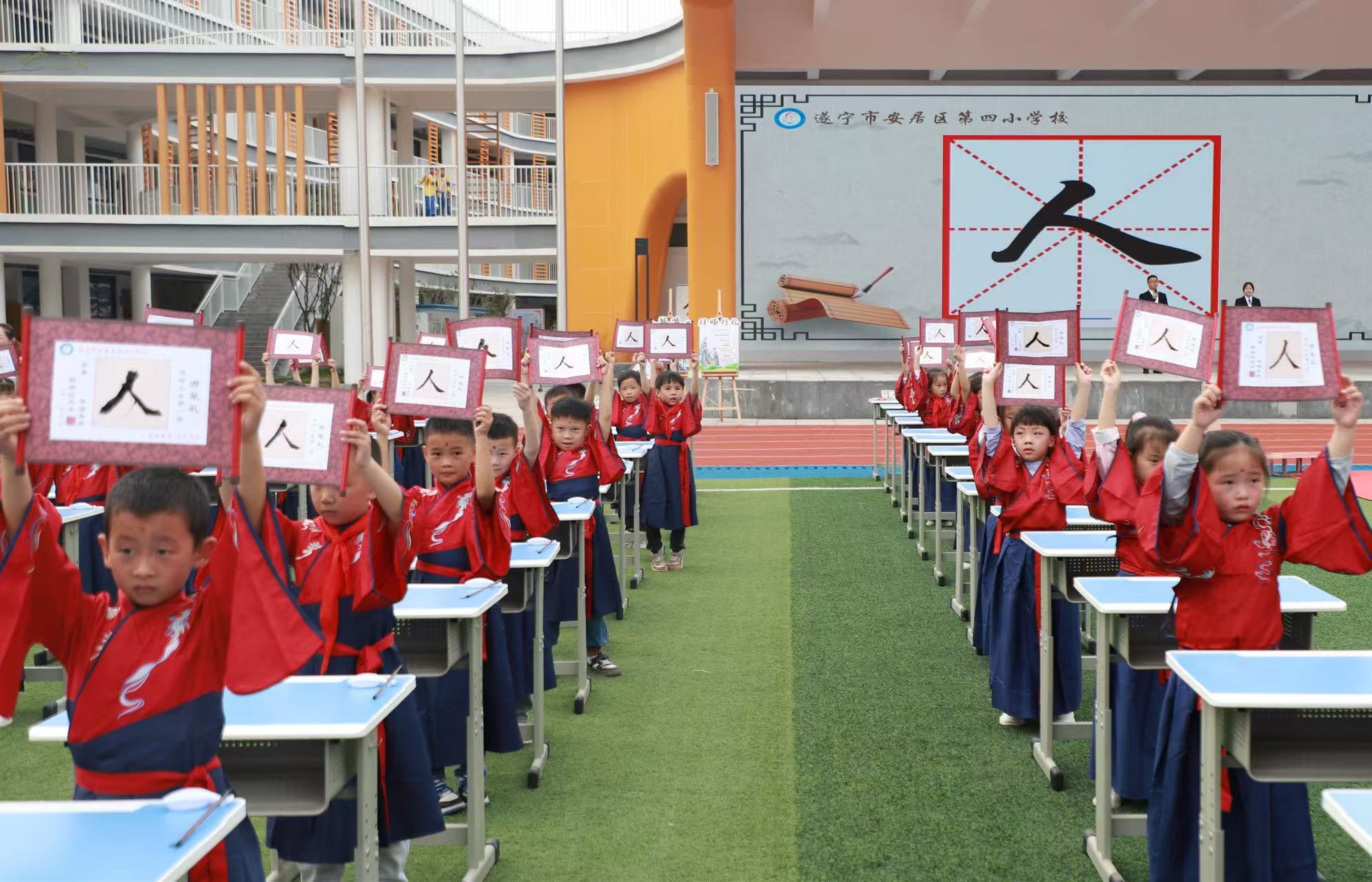 10月14日,安居四小的操场上热闹非凡,一场别开生面的开笔礼活动正在这里举行。此次活动以“开笔启智正品行·礼润童心向未来”为主题,传承传统文化,为342名一年级新生开启智慧之门,激励他们珍惜读书机会、勤奋学习。