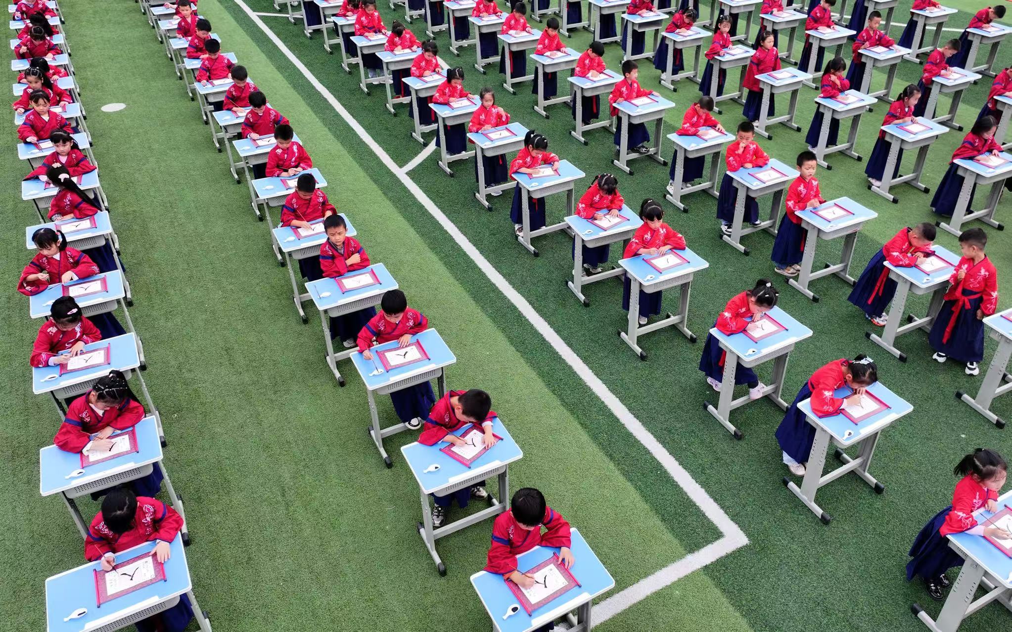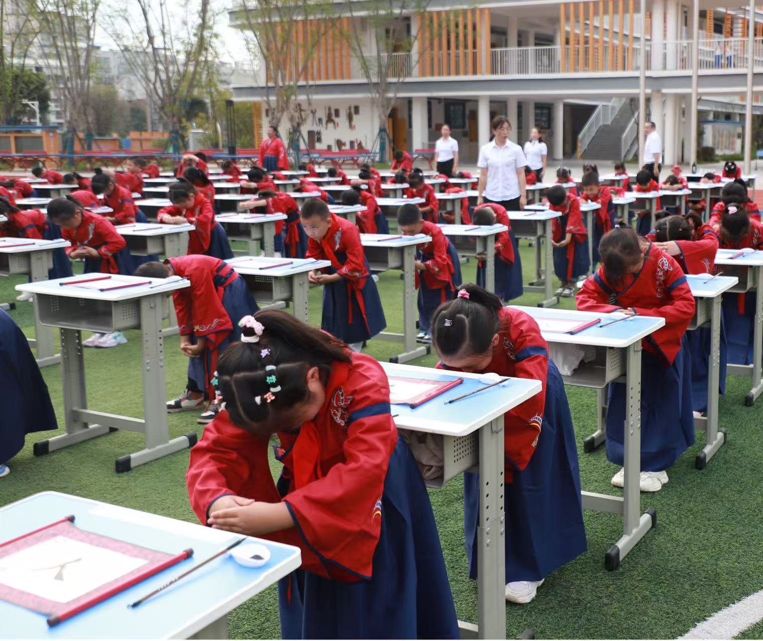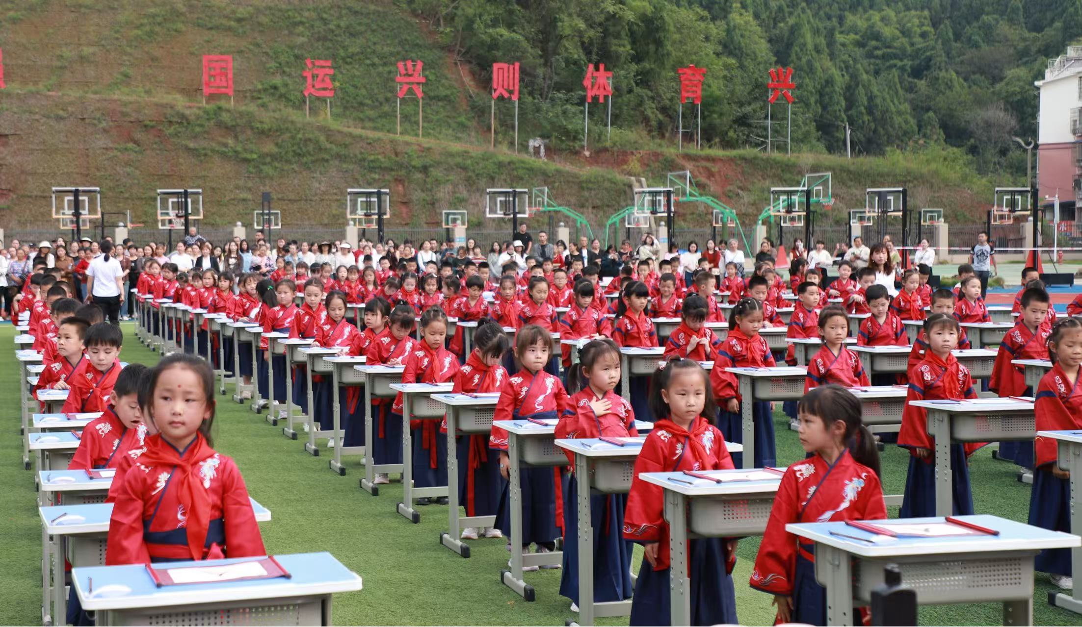 10月14日,安居四小的操场上热闹非凡,一场别开生面的开笔礼活动正在这里举行。此次活动以“开笔启智正品行·礼润童心向未来”为主题,传承传统文化,为342名一年级新生开启智慧之门,激励他们珍惜读书机会、勤奋学习。