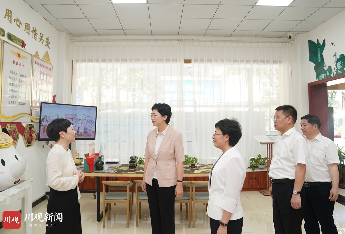 施小琳在遂宁市船山区育才路街道犀牛社区,调研发展社区社会企业、助推社区公益“微服务”和城市街区改造、消费场景打造等情况。