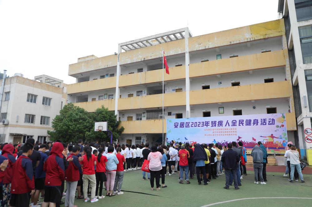 6月15日,安居区2023年残疾人全民健身活动在安居区特殊教育学校开幕。来自全区各镇(街道)理事长、专干、运动员以及特殊学校的200余名残疾人运动员参加开幕式。