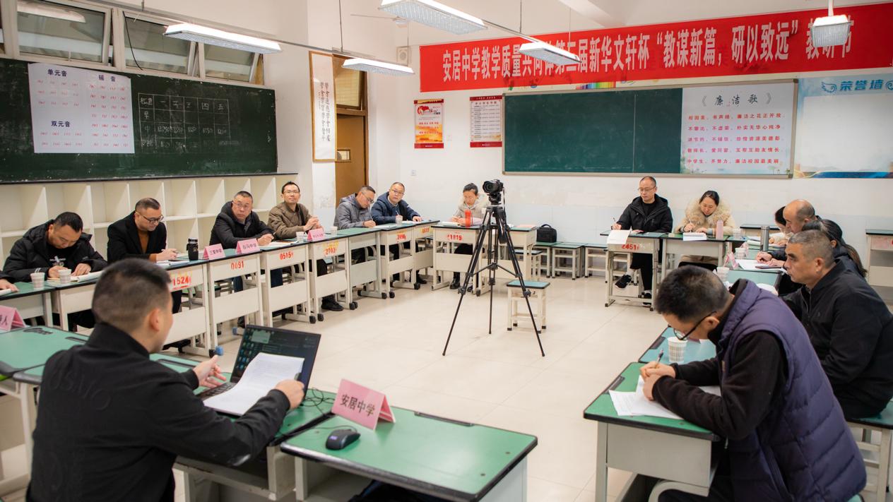 课虽尽而意无穷,赛虽止而思未尽。本次教研活动不仅是教师们教学技能的竞技场,更是提升教学能力、共享教学智慧的重要平台。安居中学教务处主任袁富强表示,下一步,学校计划将初中学段和高中学段进行融合,把常规教研与联合教研相结合,把学校的青蓝结队、名教师培养、名师工作室的评选结合起来,达到教学质量的整体提升。