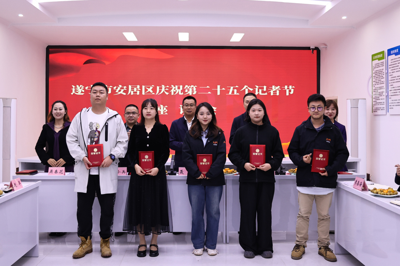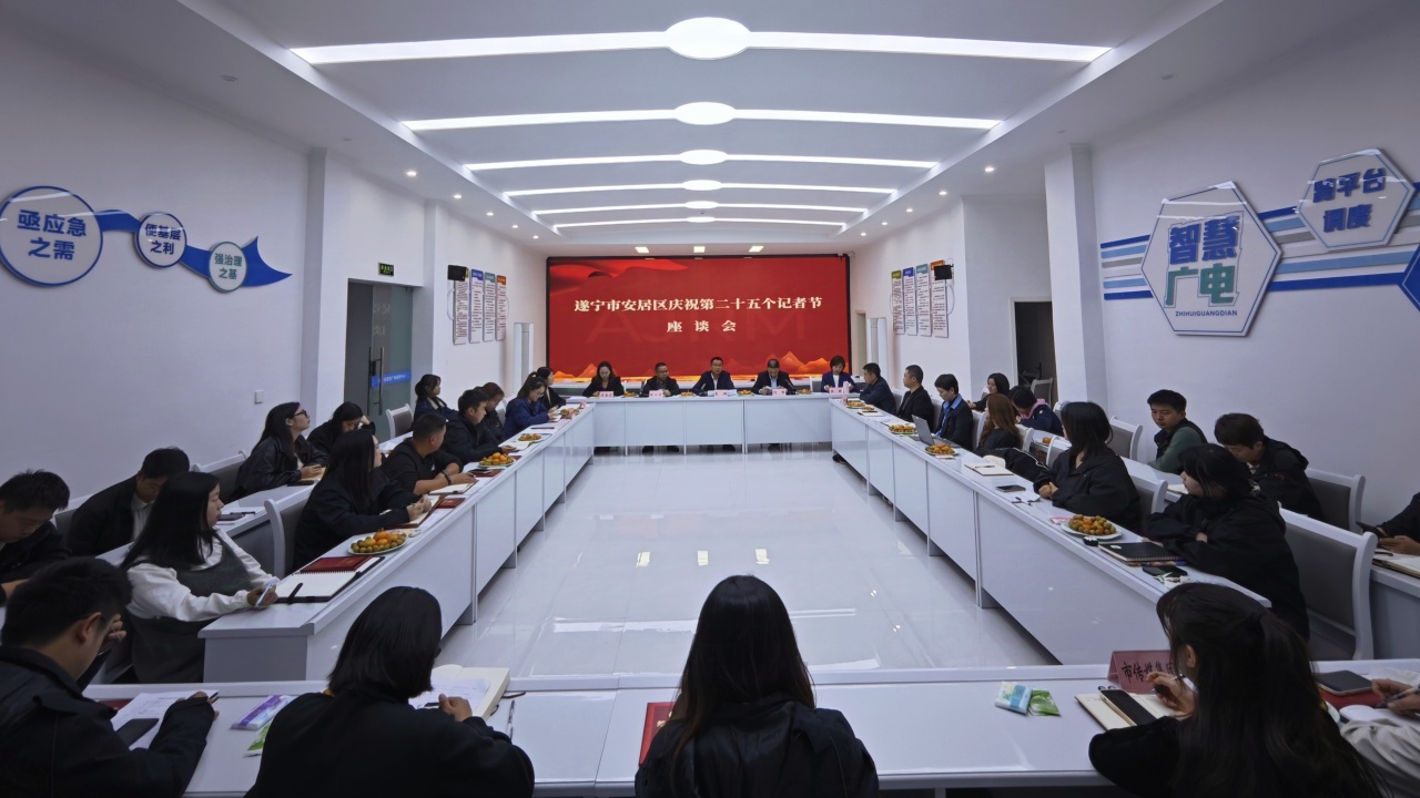 11月8日,安居区庆祝第25个中国记者节座谈会召开,全区新闻工作者代表齐聚一堂,共叙初心使命,共话新闻事业。区委常委、区委办主任聂鹏参加会议并讲话,区委宣传部副部长、区文明办主任,区新闻出版(版权)局局长冯唯主持会议。