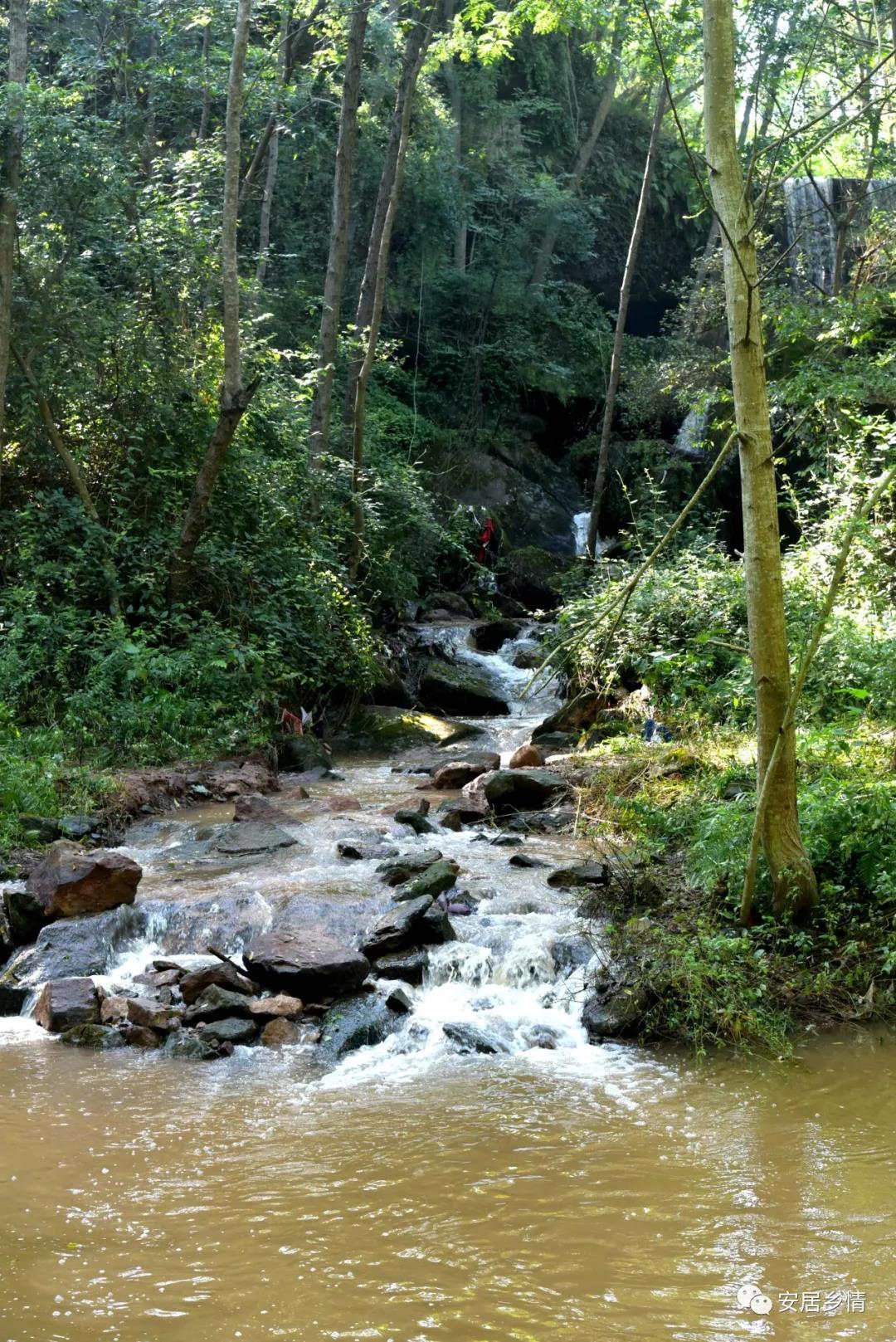 沿着林间小道向峡谷更深处前行,地势慢慢开阔,溪流澄澈,蜿蜒贯穿整个山谷,鱼游浅水、石立溪中动静之间,自然成景,相得益彰。