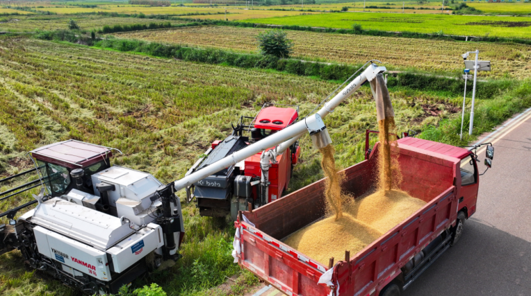 值得一提的是,“泰优粤禾丝苗”不仅“抢时间”,更“保产量”,平均亩产能达到1100斤。为实现农事有序推进,合作社还搭配种植了生长期较长的“品香优秱珍”品种,通过错峰收割模式,让丰收节奏更可控。