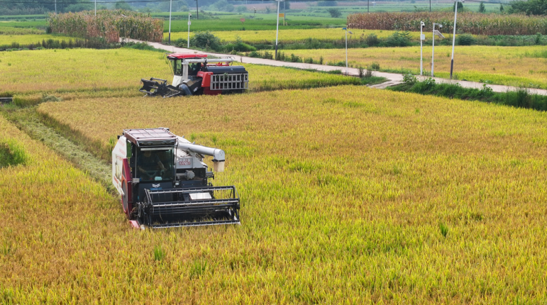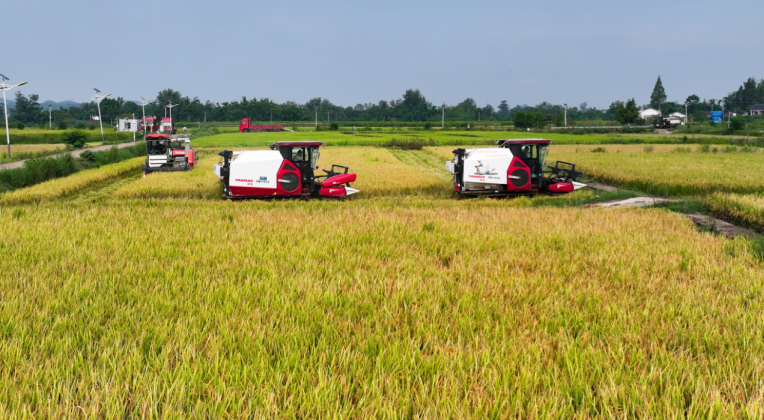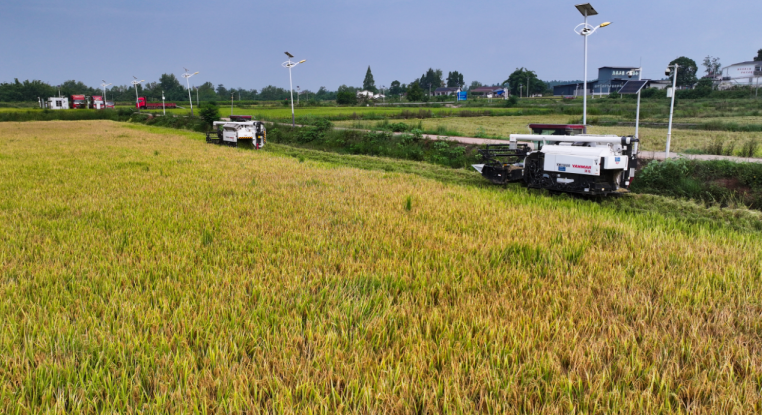 8月8日,安居区三家镇三门村的千亩稻田里金黄翻涌,4台收割机轰鸣作业,这里率先迎来“遂宁第一镰”,奏响了全市规模化水稻收割的序曲。