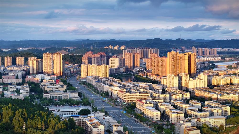 6月30日黄昏,一场夏雨过后,安居城区迎来如画暮色。落日熔金,霞光泼洒,整座城市的天际线、楼宇与街道被温柔浸染,沉浸在一片辉煌而宁静的金色梦境之中。