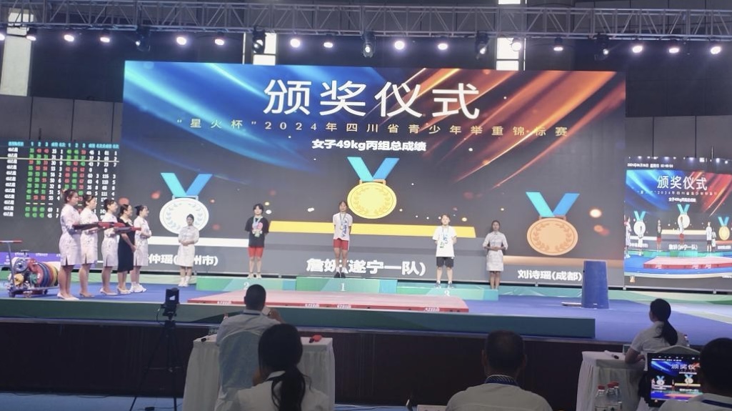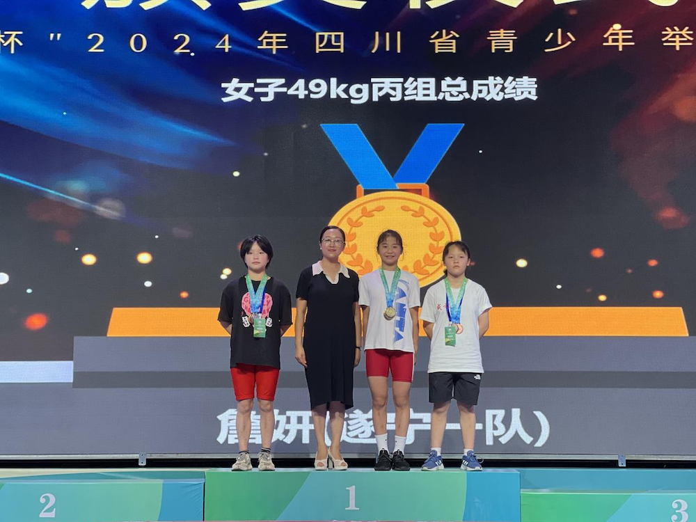 7月15日至21日,由四川省体育局主办,四川体育职业学院举摔柔运动管理中心、雅安市文化广播电视体育和旅游局、芦山县人民政府承办的2024年四川青少年举重锦标赛在芦山体育馆举行,共有来自全省各市(州)的24支参赛队伍500多名运动员参赛,分为甲、乙、丙三个组别(分男、女)。比赛中,安居区举重队运动员詹妍代表遂宁队出战,以抓举第二名,挺举第一名,总成绩第一的优异成绩获得女子丙组49KG级总成绩冠军!