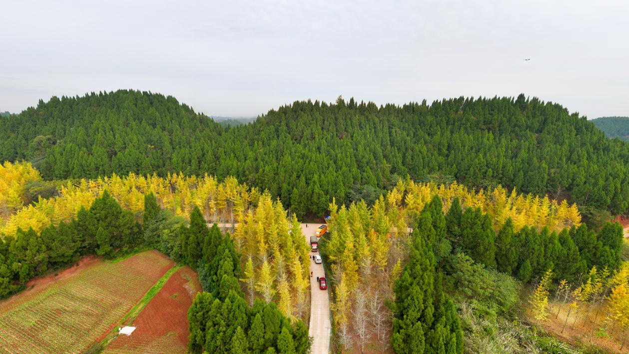 在安居区西眉镇天台村的百亩银杏林