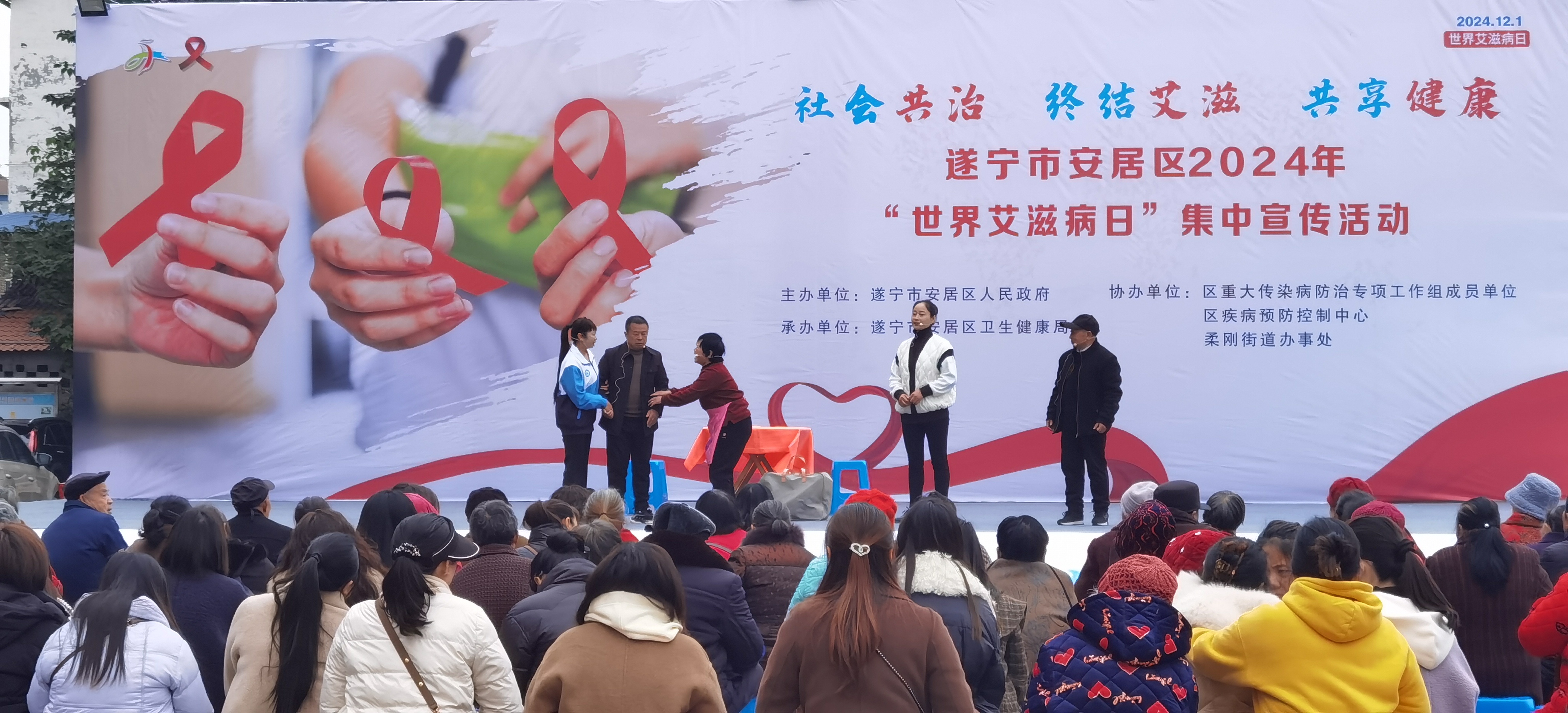 在第37个世界艾滋病日来临之际,为进一步宣传普及艾滋病防治知识,切实提高群众防艾意识,全力维护百姓身体健康和生命安全,积极营造全社会参与艾滋病防治工作的良好氛围。安居区各医疗卫生单位积极开展以“社会公治、终结艾滋、共享健康”主题宣传活动。