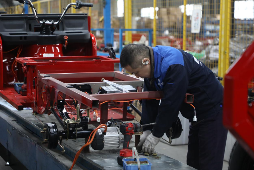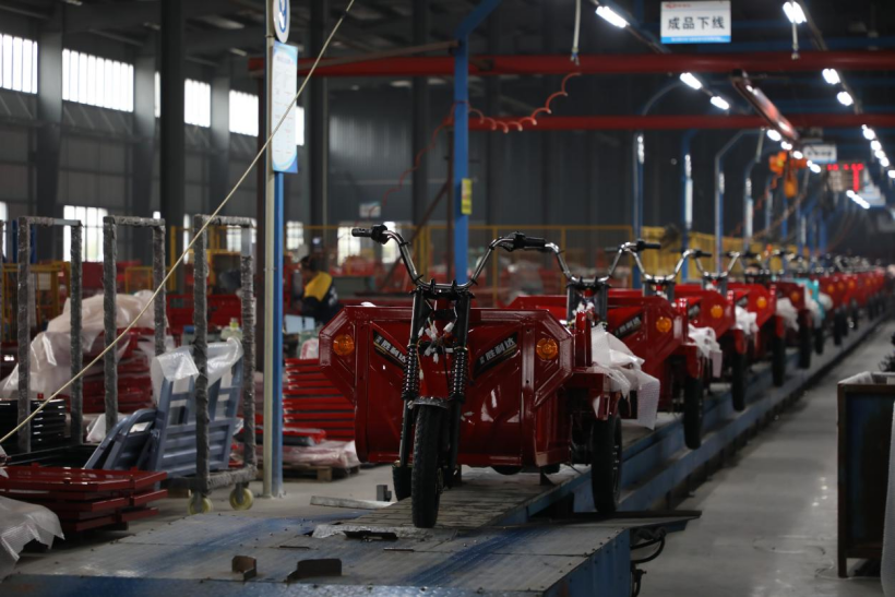 来到四川驿兴传飞新能源科技有限公司生产车间,自动化生产线正在加紧生产,机械臂灵活地在空中挥舞,不一会儿,一辆崭新的电动三轮车就下线出库,这种高效、智能的作业模式,大幅提升了生产效率。