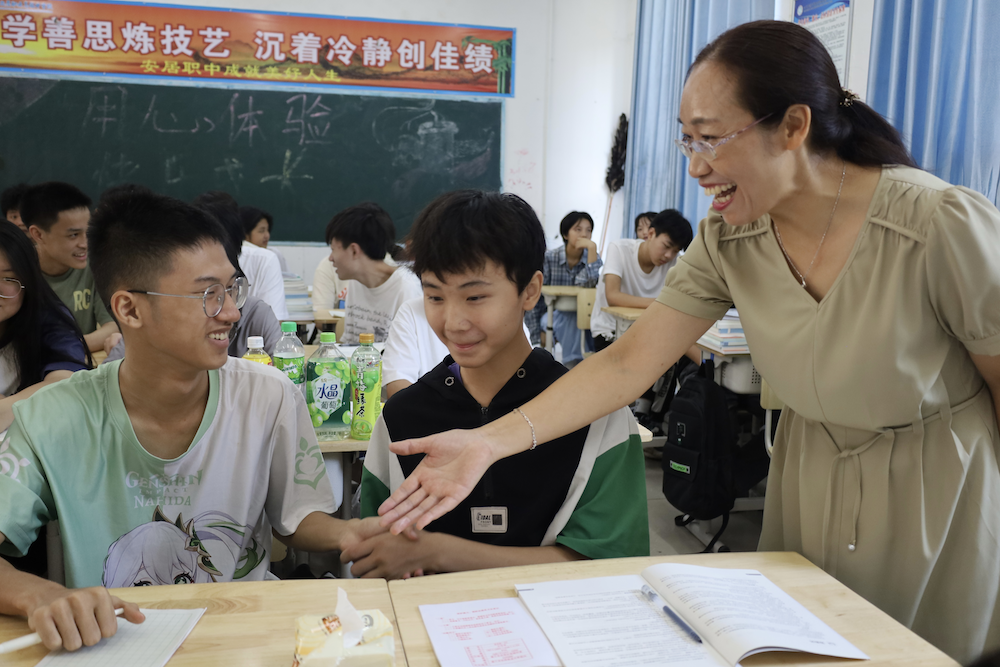 2003年,吴冬秀从安平中学来到安居职中,这一呆就是21年。期间,她担任过“9+3”学生班主任、政教处主任、英语教师,虽然工作任务繁重,但是她对学生的耐心细致未减分毫,她始终坚守育人要育心的教育理念,用温泉一般的爱去感化学生,孜孜不倦地帮助他们进步、成才。2024年,吴冬秀老师任教的班级,普职班46人45人考上专科,高考班24人11人考上本科。