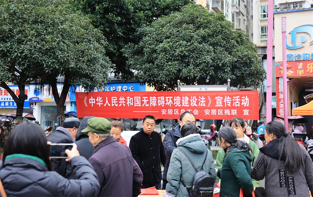 在第32个国际残疾人日来临之际,12月1日,安居区残联合区总工会开展无障碍环境建设法宣传活动。