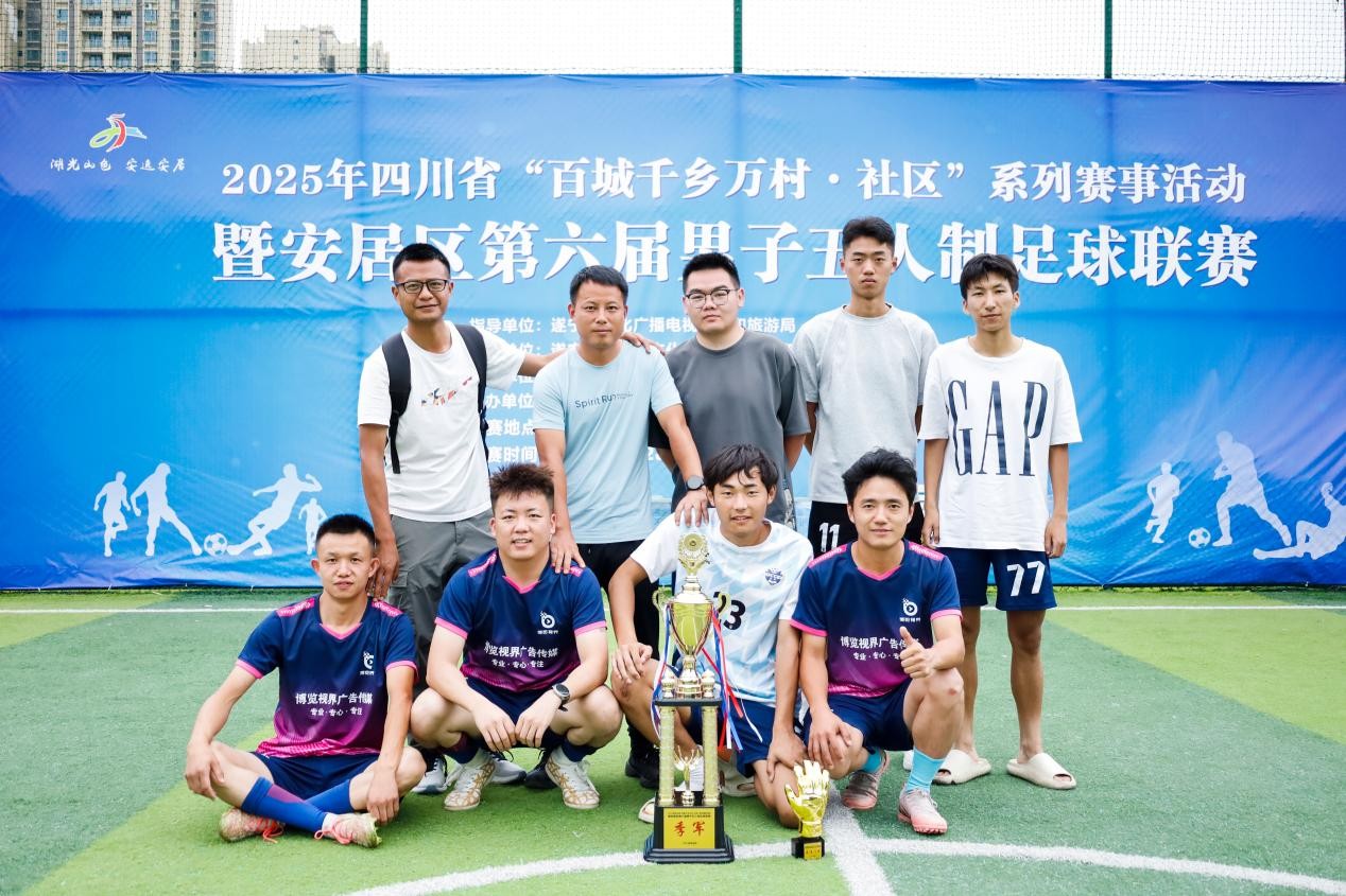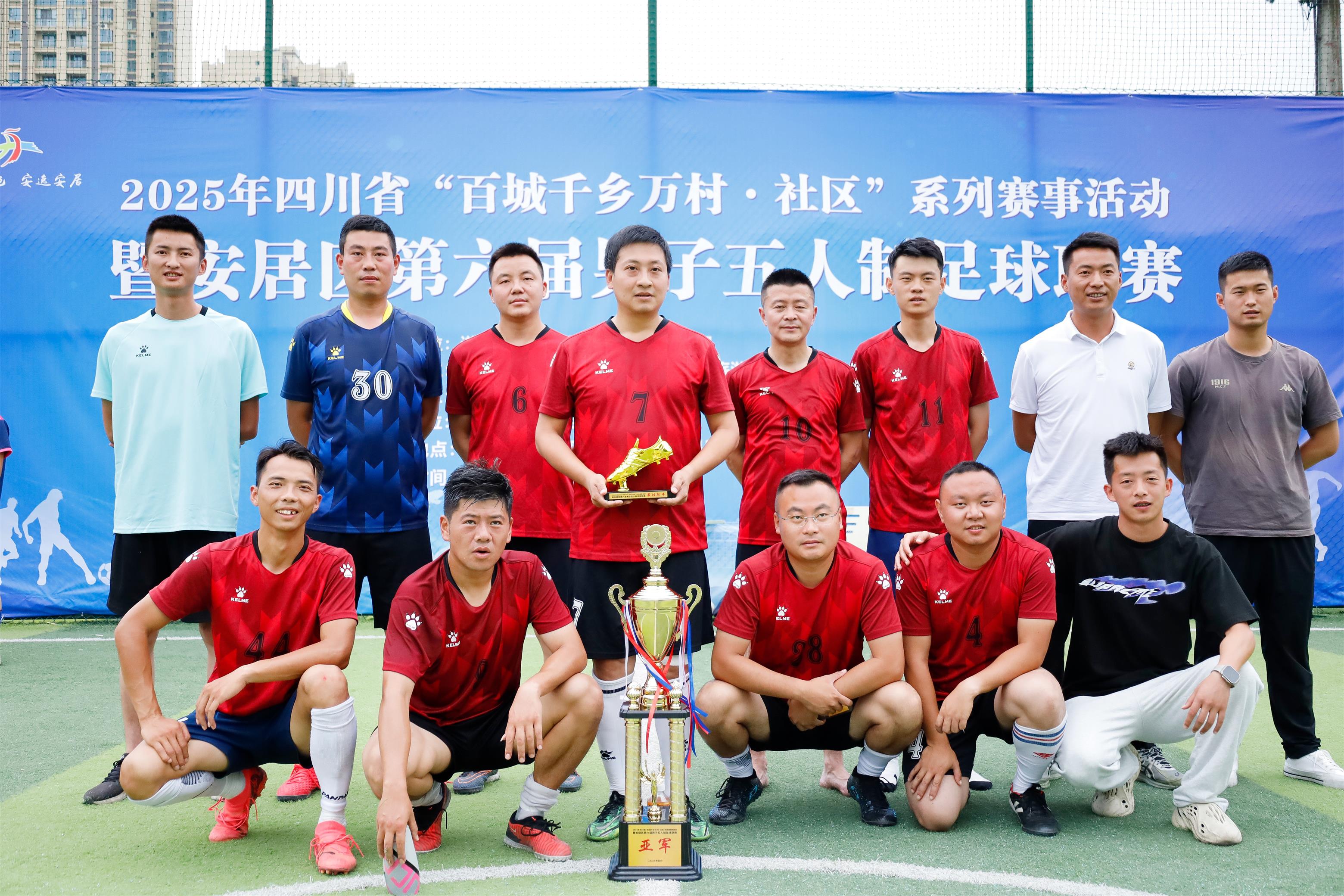 5月30日,2025年四川省"百城千乡万村•社区"系列赛事活动暨安居区第六届男子五人制足球联赛在区体育中心落下帷幕。本次赛事汇聚全区8支精锐队伍参赛,经过三天的激烈角逐,聚贤镇代表队力克群雄摘得桂冠,卓同集团、博览视界代表队分获亚军、季军,彰显安居全民健身蓬勃活力。