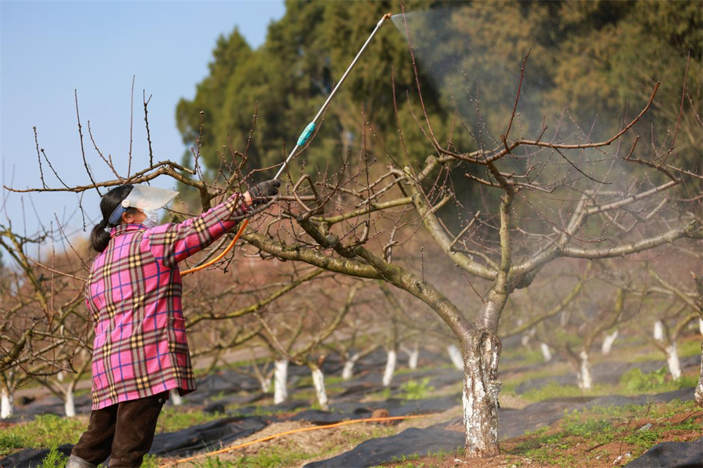 “年前对桃树进行了修枝,现在村民正对桃树开花前期进行管护,主要是施药,达到保花保果、防治病虫害的目的。”拦江镇五琅坝村党支部副书记向洪源介绍,后期还将组织村民进行施肥、修枝、梳果、套袋,为5月的成熟销售打下坚实基础。