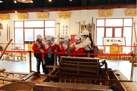 海龙凯歌作为“行读四川”研学旅游品牌认证基地,以沼气文化、农耕文明和乡村振兴成果为核心研学资源。活动中,学生们走进沼气博物馆,通过实物展示、实验操作了解沼气发展历程与可再生能源原理,亲手体验沼气点火的独特乐趣;在农耕文化馆,触摸打谷机、风车等传统农具,聆听二十四节气与农事活动的关联讲解,感受“从田间到餐桌”的劳动智慧;在非遗工坊,跟随民间艺人学习竹编技艺,在动手实践中传承传统文化。此外,学生们还参观了凯歌公社、知青旧居等特色场景,在红色文化熏陶中厚植爱国情怀,直观感受乡村旅游与特色农业带动共同富裕的发展成果。
