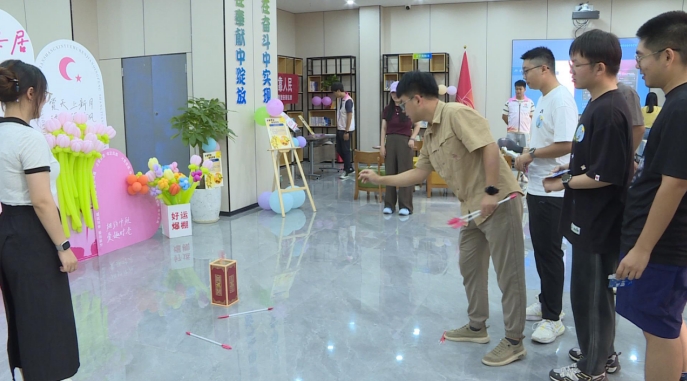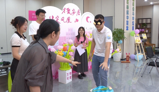 游戏环节中,青年男女们围在一起,通过运球高手、盲人过河、投壶取巧、DIY玉兔挂灯、中秋趣味问答等一系列精心设计的互动,让大家在轻松愉快的互动中,碰撞出更多的浪漫火花,在寻觅知己的同时,感受到独具魅力的中秋传统文化。