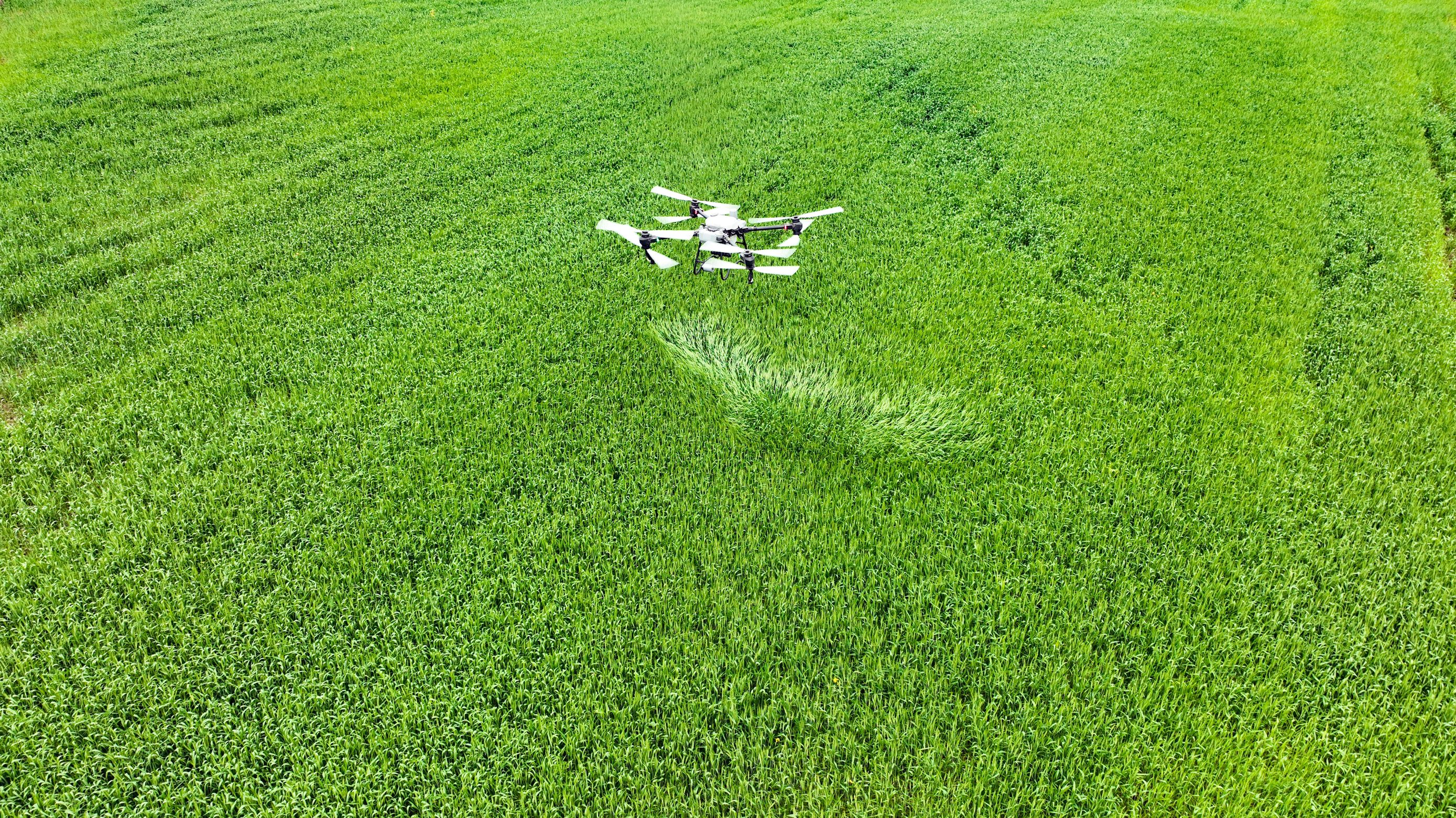 眼下正是小麦春管的关键时期。在三家镇高石村,安叁农机的工作人员正在对小麦进行“飞防”作业,随着螺旋桨的嗡鸣声,一架载着药剂的植保无人机按照设定的路线在小麦地上方来回飞行,喷出均匀的药剂水雾。