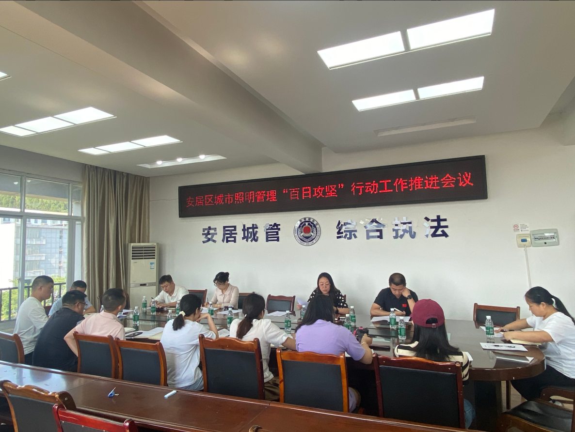 为进一步加强城市管理,提升城市环境面貌,营造干净、整洁、有序、安全、群众满意的市容环境。2025年5月13日下午,区综合执法局组织区住房城乡建设局、区国资局、安居经开区管委会等12个涉及路灯管护单位,开展了城市照明管理 “百日攻坚”行动工作推进会议,确保路灯管理工作取得显著成果。