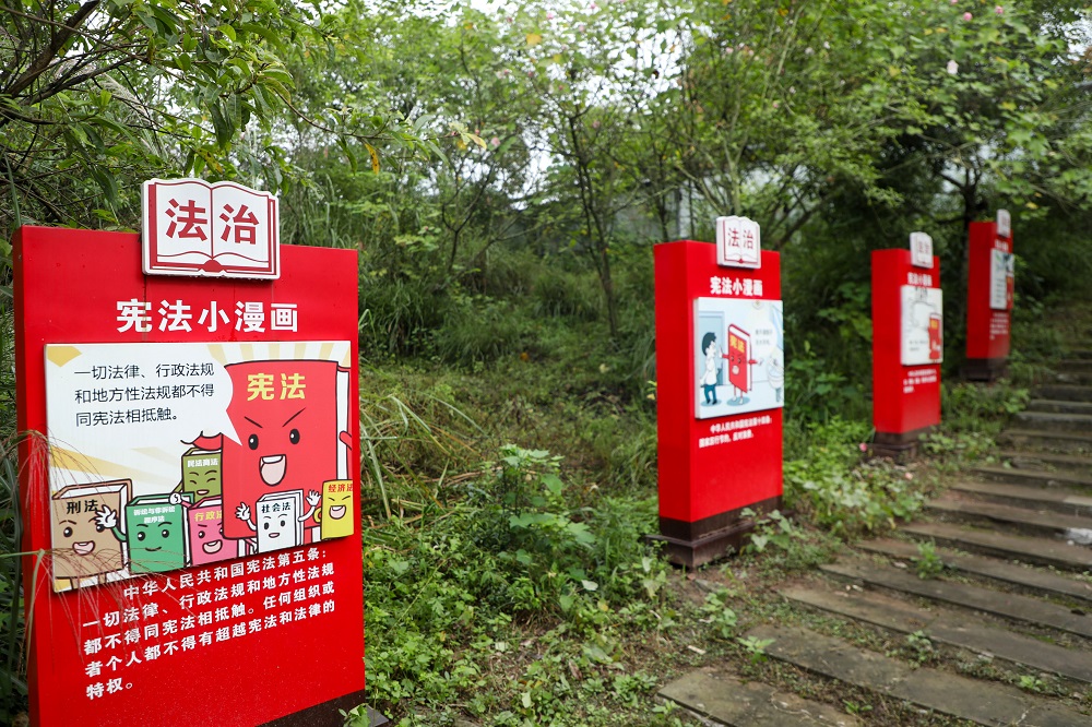 “有空的时候就来这边走一走看一看,在散步的同时,也能增加法治知识,预防日常生活中的一些骗局。”在磨溪镇老木垭村,一方清幽的法治“口袋公园”成为附近村民茶余饭后休闲的好去处。