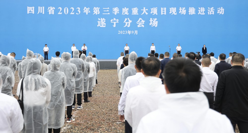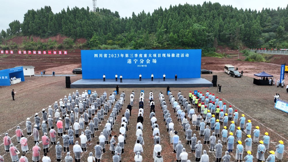 9月25日,四川省2023年第三季度重大项目现场推进活动遂宁分会场在安居举行,深入学习贯彻党的二十大精神和习近平总书记来川视察重要指示精神,全面落实省委十二届二次、三次全会和省委工作会议、市委八届七次全会暨2023年上半年经济形势分析会议工作部署,围绕“1336”总体工作思路,鲜明“项目为王”导向,为加快建设成渝中部现代化建设示范市和“锂电之都”夯实支撑。