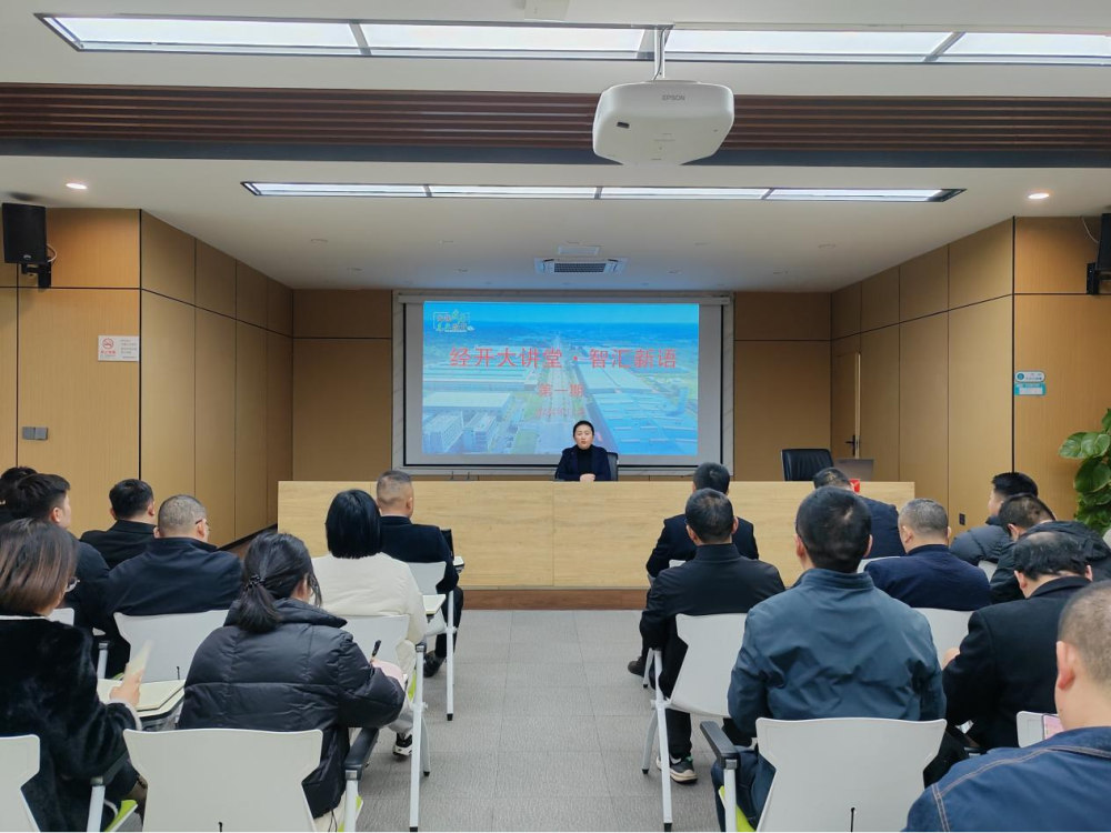 为深入学习贯彻习近平新时代中国特色社会主义思想和党的二十届三中全会、省委十二届六次全会、市委八届十次全会、区委五届十三次全会精神,牢固树立“大抓工业、重抓制造业”发展理念,营造全面全员全域开展“效率革命行动”良好氛围,激发全体干部职工学习热情、干事激情、服务真情,11月26日晚,“经开大讲堂·智汇新语”第一期开讲。园区40余名干部职工齐聚一堂,利用下班时间集体“充电”“赋能”。安居经开区党工委书记邹敏,安居经开区党工委副书记、管委会主任向阳参加活动。